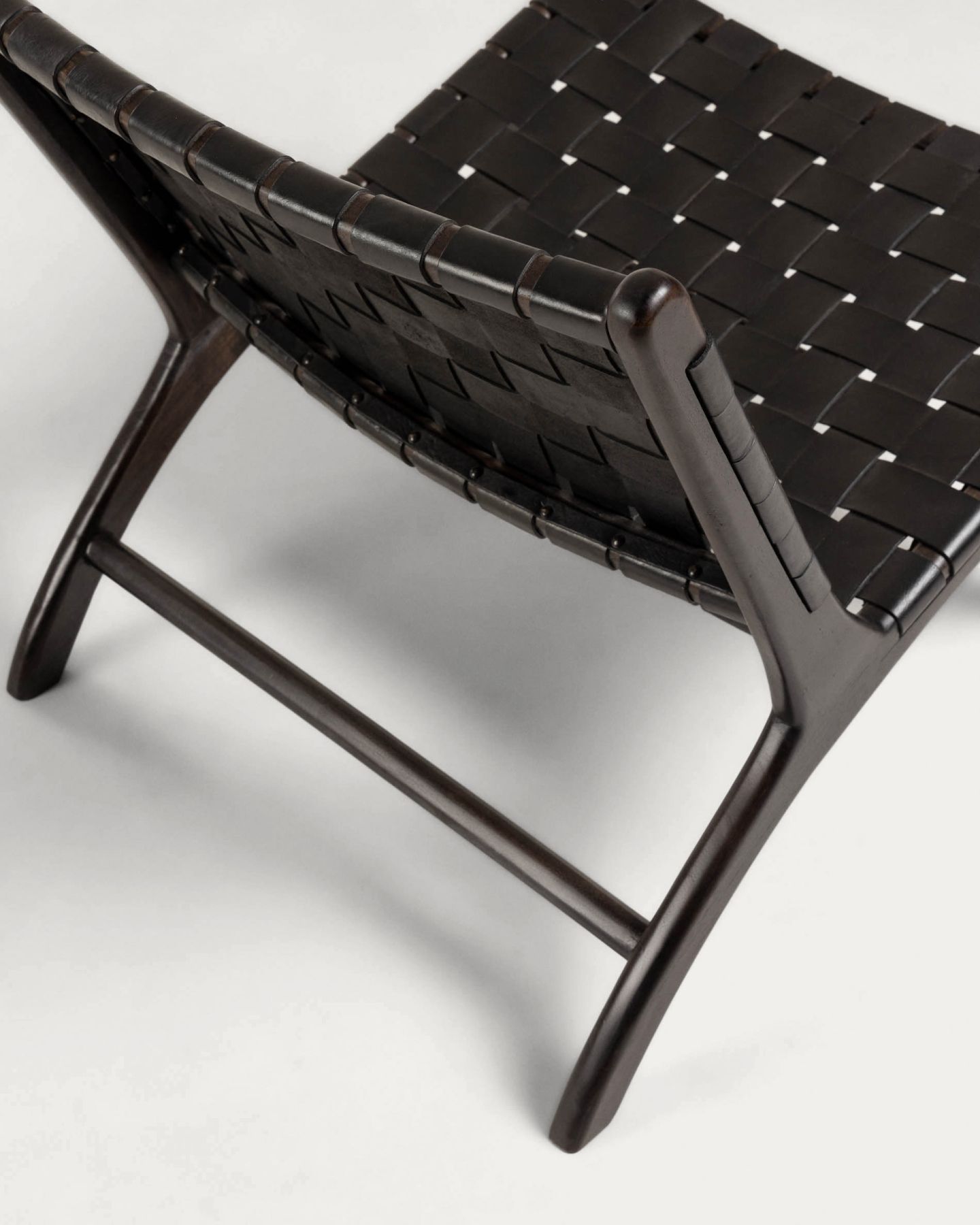 Спинка и сиденье кресла Calixta выполнены из черных плетеных кожаных ремешков. Конструкция изготовлена из цельного дерева мунгур, а также окрашена в черный цвет, чтобы сохранить свой черный любовный вид. Из-за того, что в каждом кресле используются натуральные материалы, они имеют свои полосы, тона и текстуры, что делает каждый предмет эксклюзивным и неповторимым. Более того, тот факт, что они не являются синтетическими, делает их экологически чистыми. Теперь почувствуйте себя комфортно со стилем.