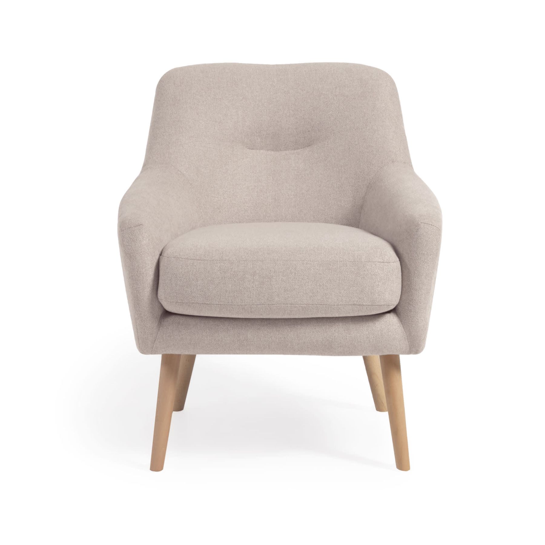 Кресло состоит из каркасного сиденья в тканевой обивке и опоры из массива бука в натуральной отделке.