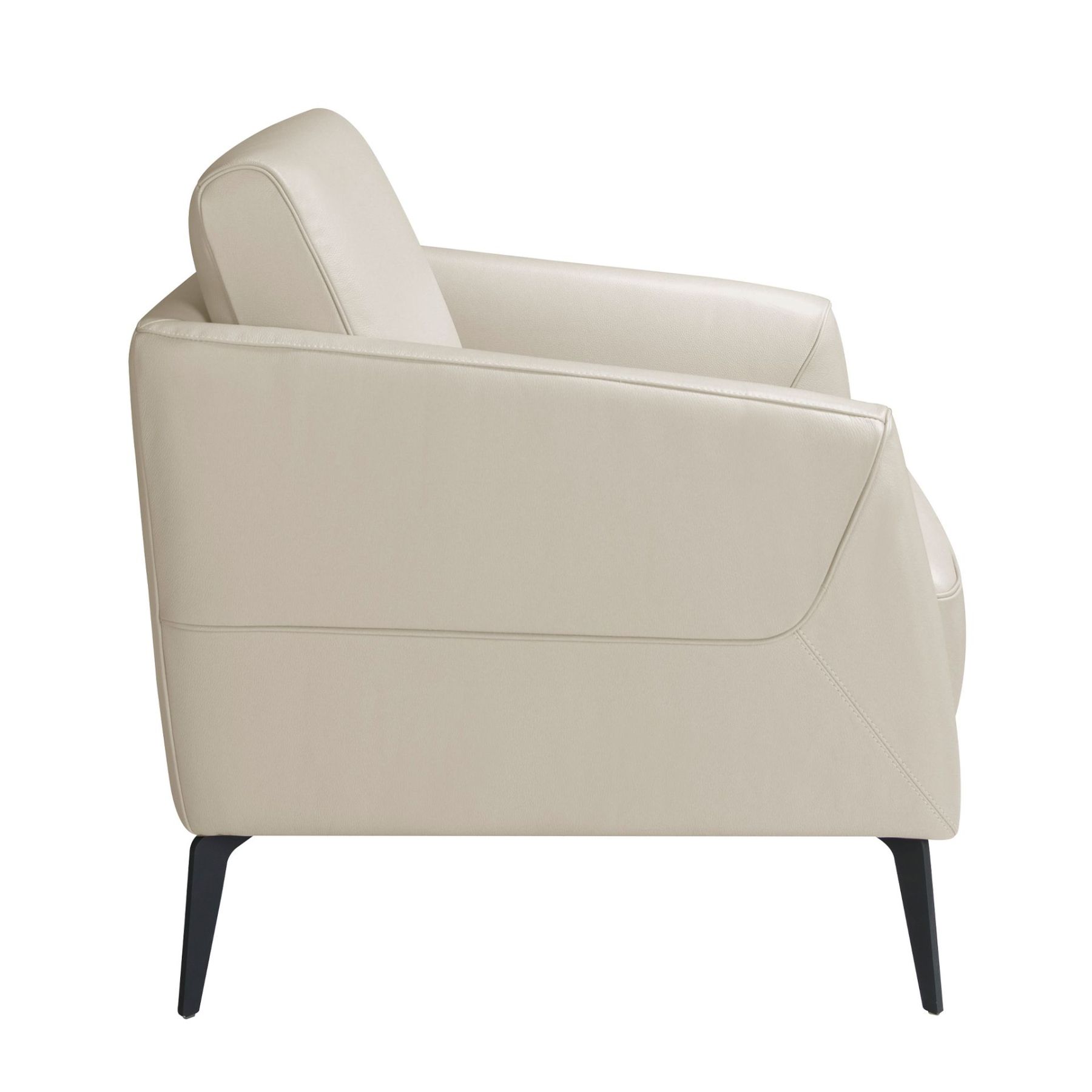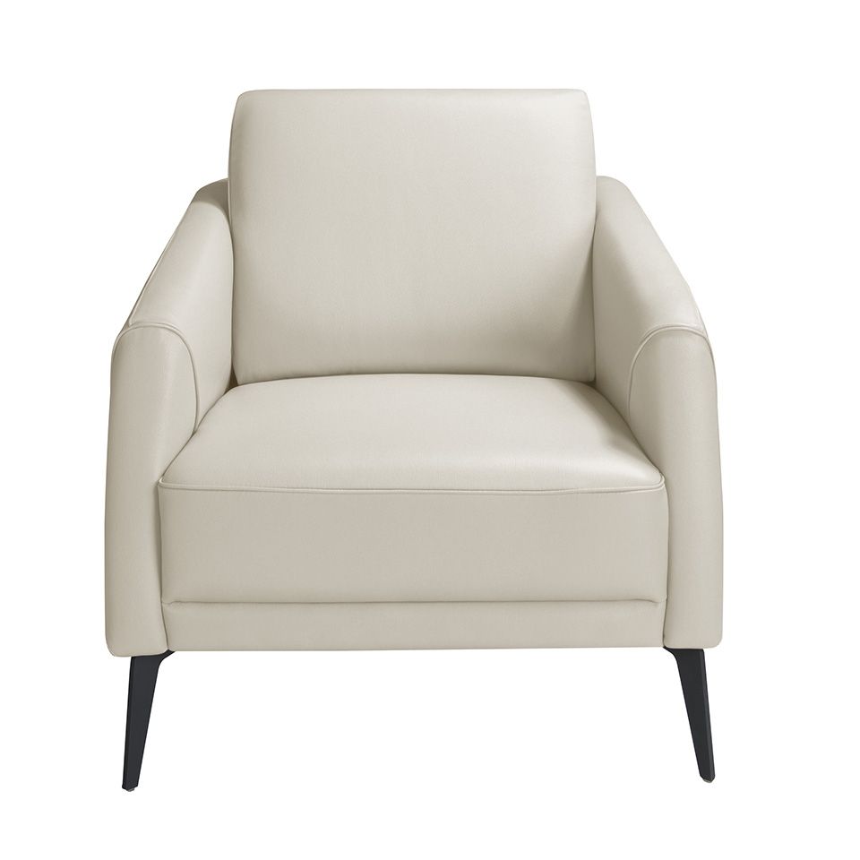 Кресло обито серо-коричневой кожей. Стальная конструкция ножек окрашена черной эпоксидной смолой.