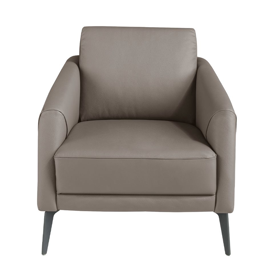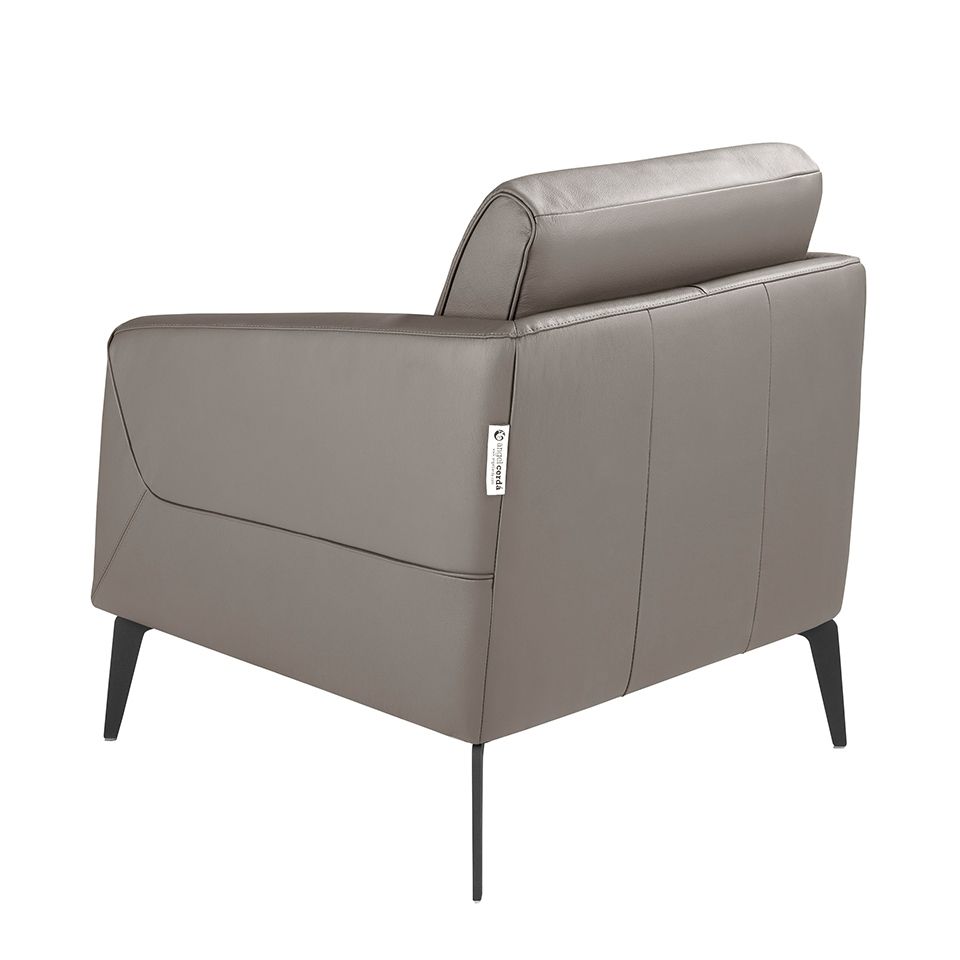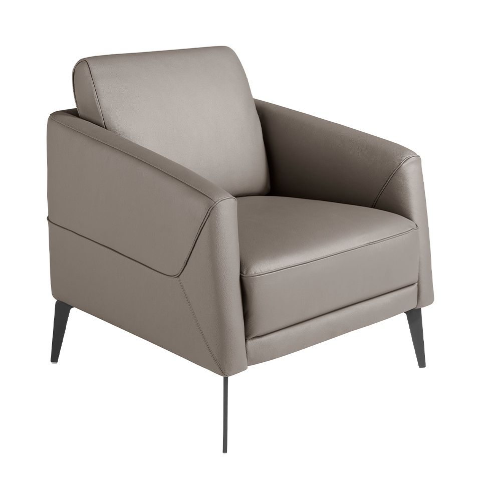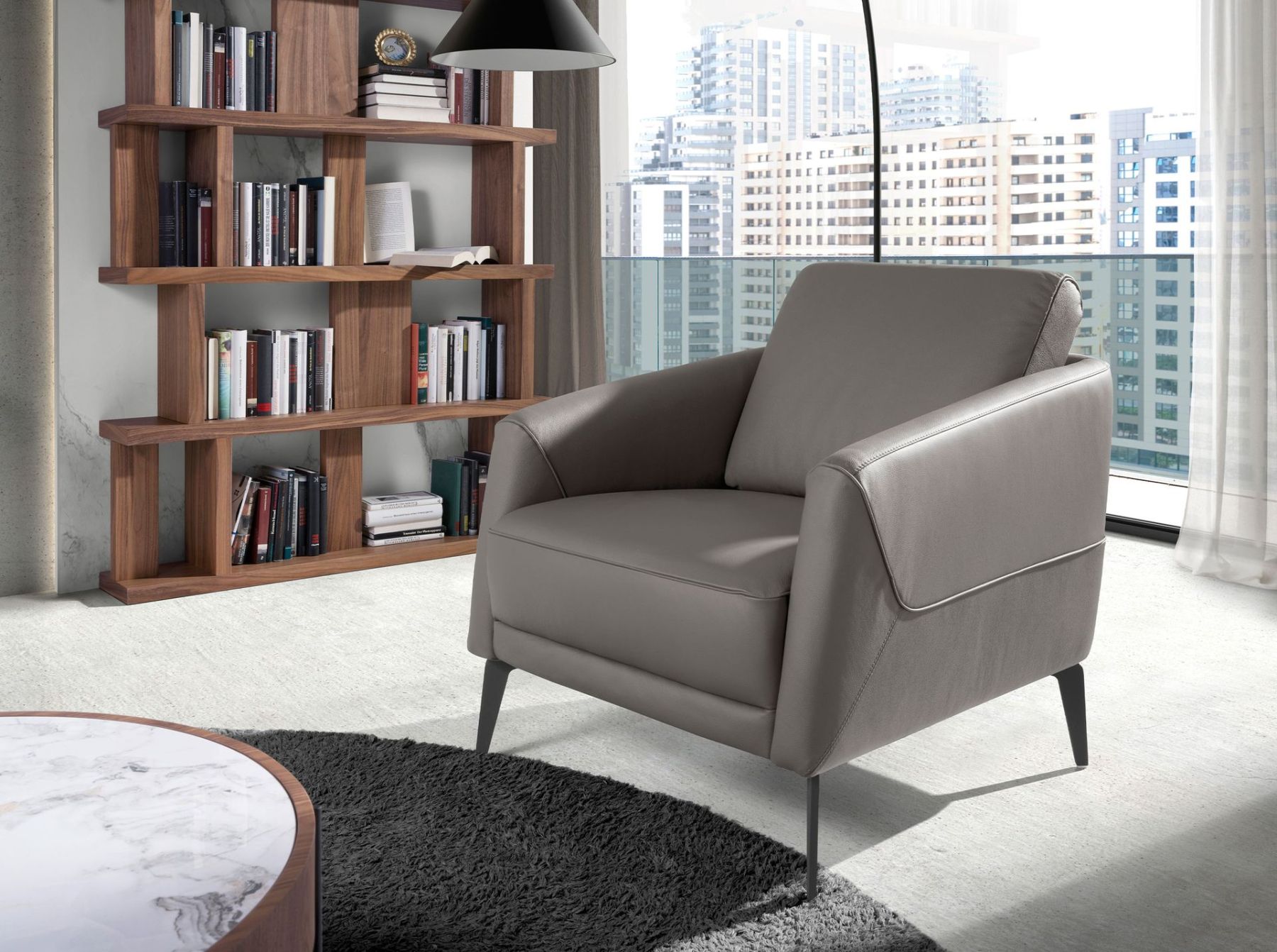 Кресло современного дизайна с подлокотниками, сиденье и спинка обиты темно-серой яловой кожей. Как по своему стилю, так и по ножкам из нержавеющей стали, окрашенным черной эпоксидной смолой, это кресло представляет собой идеальное сочетание дизайна и комфорта.