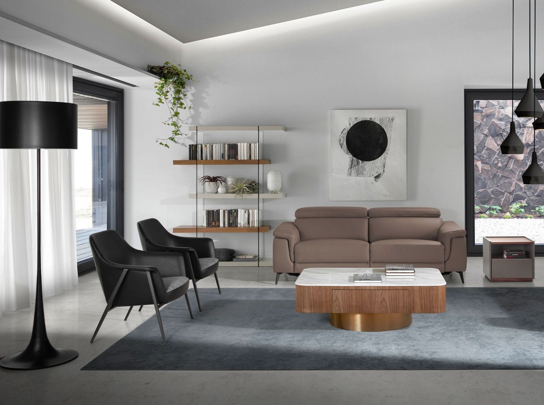 Кресло современного дизайна с оригинальным сочетанием обивки из ткани, аналогичной GAUDÍ 51, и черной искусственной кожи, аналогичной AQUA 90 . Модное кресло, идеально подходящее для вашей зоны отдыха и релаксации, со спинкой и сиденьем, заполненными пенополиуретаном плотностью 25 кг/м3. Его ножки из нержавеющей стали матового черного цвета придадут тот авангардный и элегантный вид, который вы ищете в своем доме. Идеальное сочетание дизайна и комфорта.