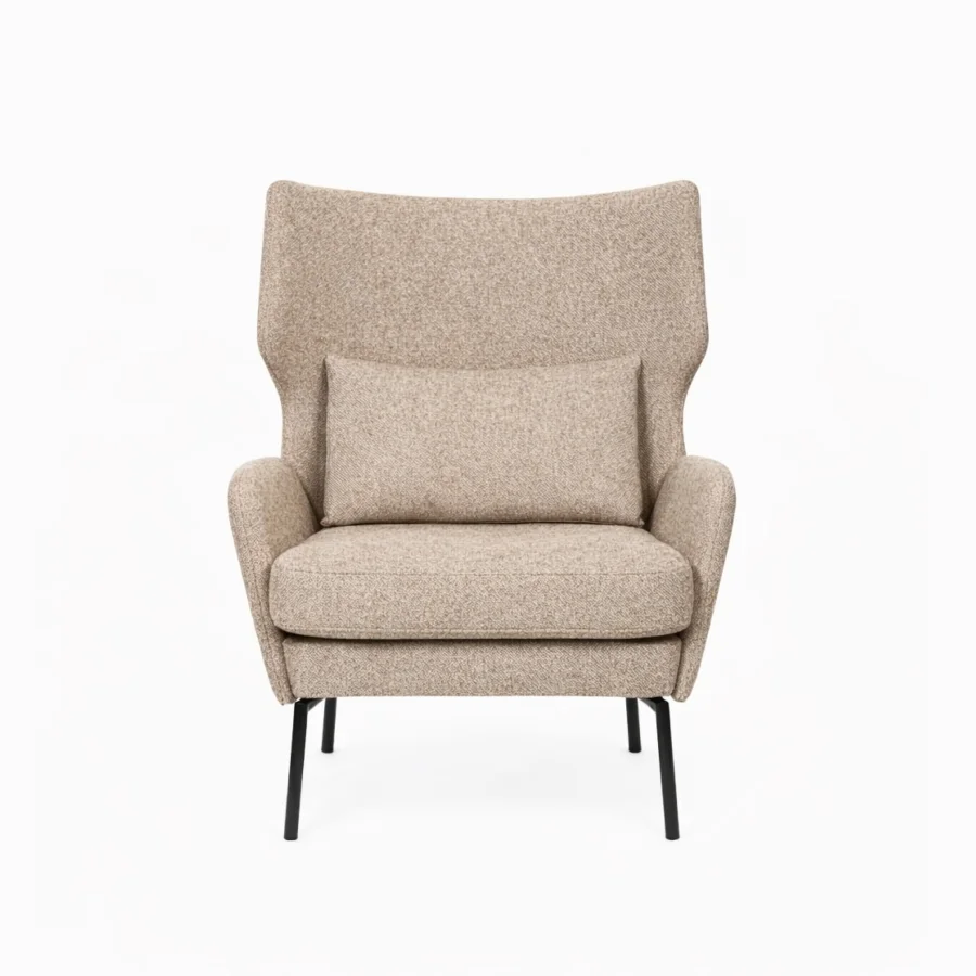 Высокая спинка с "ушками" обеспечивает отличную поддержку для головы и шеи, создавая уютный и обволакивающий эффект. В комплект входит съёмная подушка для поясницы, которая обеспечивает дополнительный комфорт.
