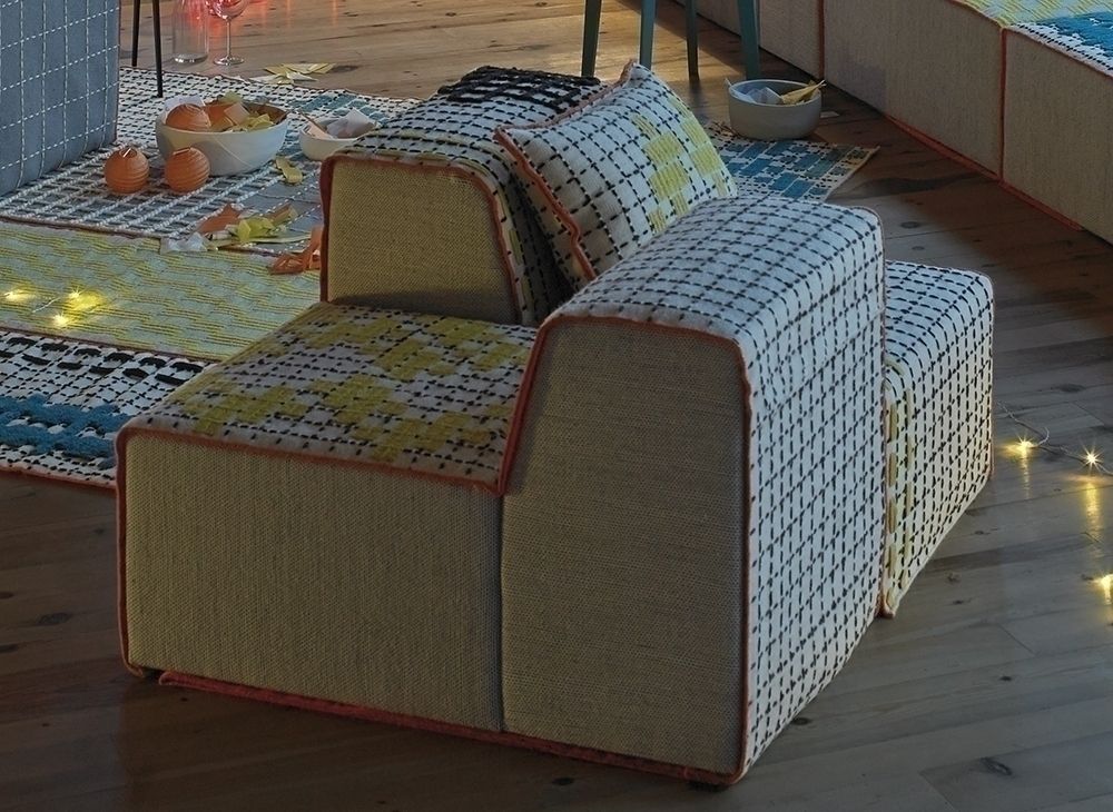 В обширной коллекции Bandas предметы можно как угодно комбинировать друг с другом, составляя эффектные и — главное — эффективные пространства для отдыха. Дизайнер Патриция Уркиола уверена: решение здесь найдётся для любого помещения и для любого настроения. Ковры составляются по принципу паззла, а объединённые в группу кресла формируют целую лаунж-зону. И всё это можно переставлять и обновлять! Кресло Bandas доступно в широкой палитре: розовое, серое, оранжевое, жёлтое, бирюзовое, белое, чёрное — и с различными рисунками. Модель производится в смешанной технике. Верх выполнен из 100% шерсти. Наполнитель — поролон высокой плотности. Каркас изготовлен из дерева. Также в нашем интернет-магазине вы можете купить кресло Bandas удлинённым сидением — на нём комфортно располагаться прямо с ногами, как на шезлонге.