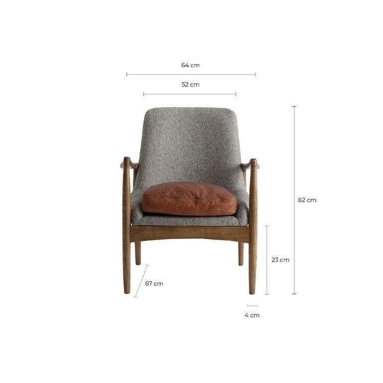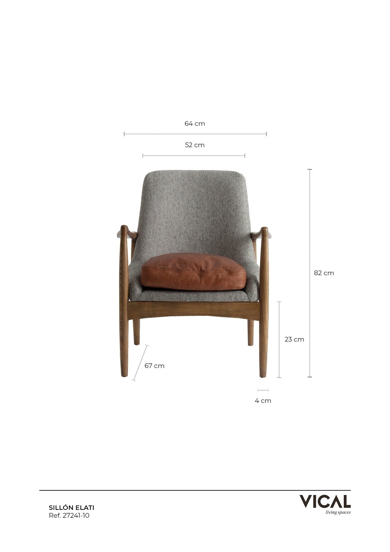 Кресло elati, цвет серый/натуральный, винтажный стиль. Изготовлен из ели в сочетании с кожей и полиэстером. Изделие съемное.