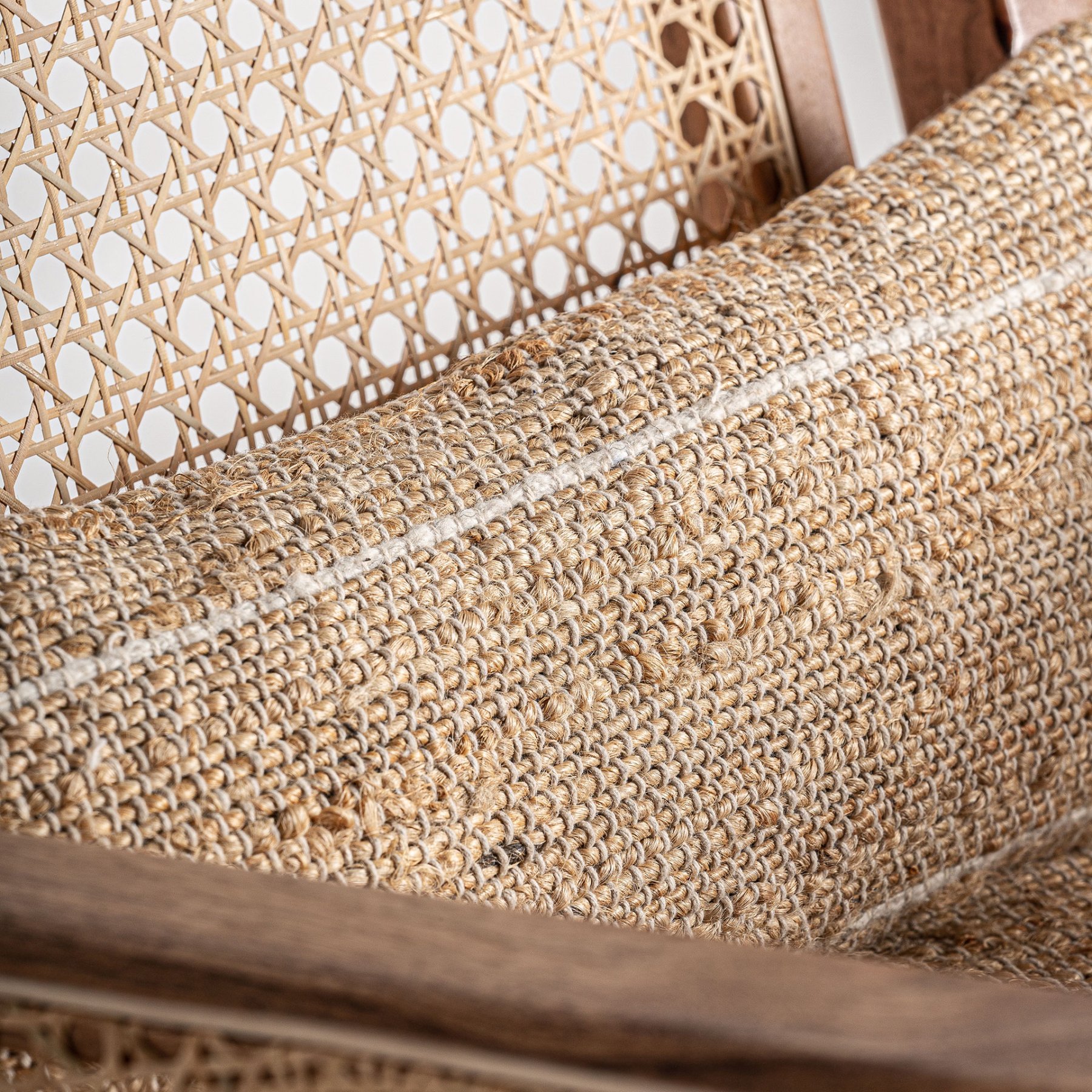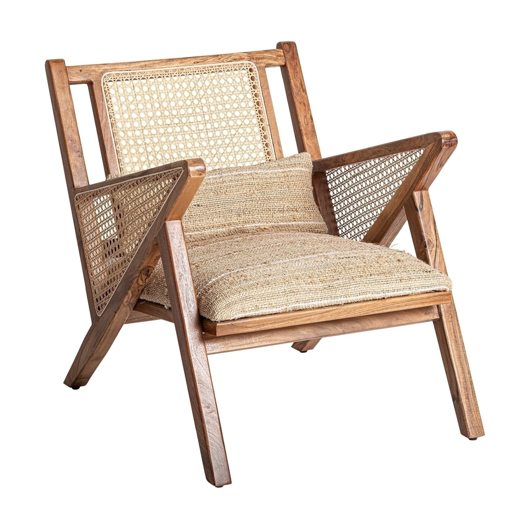 Кресло Hickory, натурального цвета, стиль бохо. Изготовлен из древесины ДМ в сочетании с хлопком и джутом. Съемное изделие.