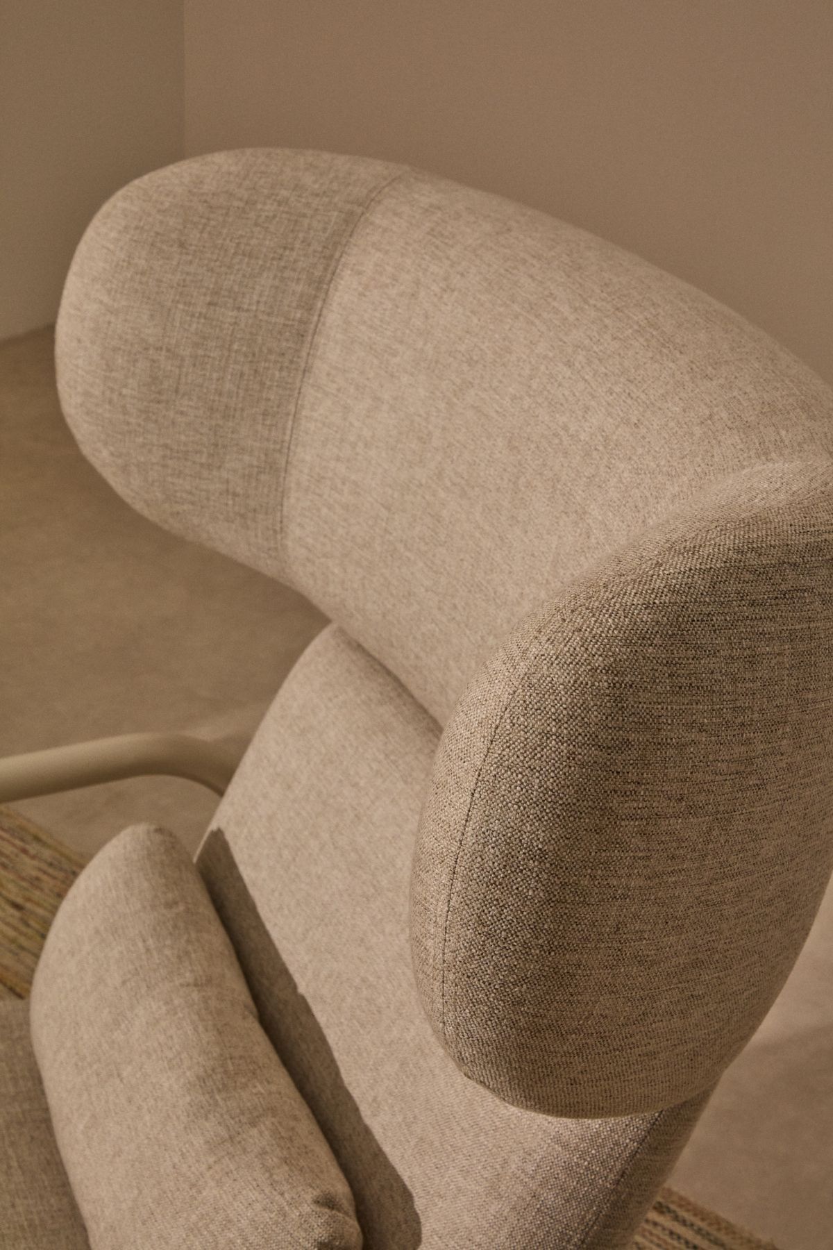 Кресло в этой коллекции переосмысливает классическое кресло для отдыха, добавляя простые геометрические линии и смелые объемы, которые придают ему отличительный и уникальный характер. Обито бежевой структурированной тканью, оно обеспечивает высокую устойчивость к истиранию, а поставщик сертифицирован по стандарту OEKO-TEX® STANDARD 100, что гарантирует экологически безопасное и экологически ответственное производство.