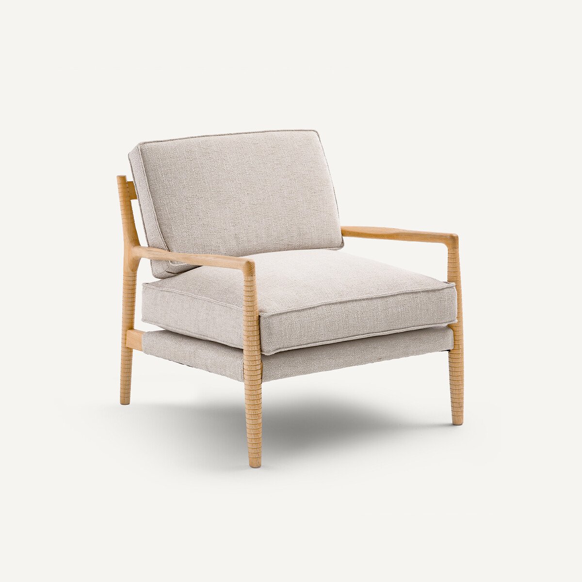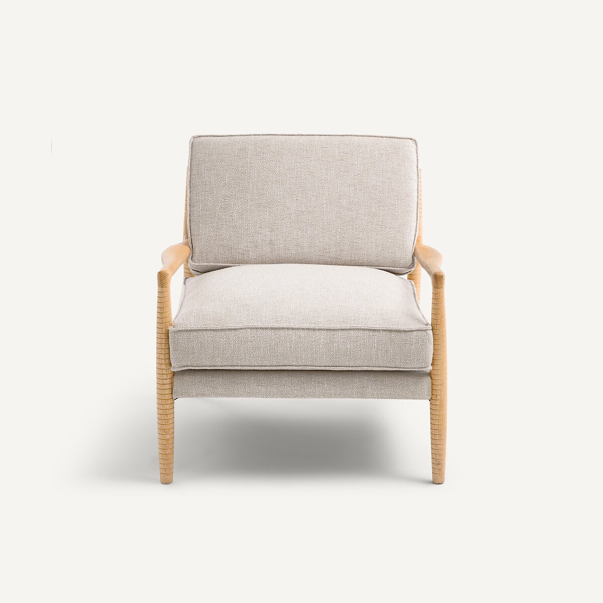 Кресло Dilma / Дилма отличается простотой своего каркаса из дуба. Органичные линии, резные подлокотники и отшлифованные углы напоминают об изяществе скандинавских кресел в стиле 50-х годов.Полосатые детали на дереве придают ему аутентичность. Прямой угол спинки и удобные подушки делают это кресло неподвластным времени. Dilma / Дилма , легендарное кресло от бренда AMPM.Жесткость спинки: средняяЖесткость сиденья: средняяПоддержка: средняяОписание • Обивка: меланжевая ткань, 100% хлопок, плотность 600 г/м² • Каркас: массив дуба с нитроцеллюлозным покрытием • Пружинный блок: Эластичные ремни для большего комфортаНаполнитель • Сиденье: пенополиэфир (поролон) плотностью 26 кг/м³ и 30 кг/м³ и слой полиэфирных волокон • Спинка: пенополиэфир (поролон) плотностью 26 кг/м³ и 30 кг/м³ и слой полиэфирных волокон • Подушка спинки с нескользящим покрытием с обратной стороныУход • Подушки со съемными чехлами • ХимчисткаРазмеры • Ширина: 76 см • Высота: 76 см • Глубина: 75 см • Сиденье: Д66 x В39 x Г63 см • Продается в собранном виде. • ДРЕВЕСИНА ИЗ УСТОЙЧИВО УПРАВЛЯЕМЫХ ЛЕСОВ. Наличие знака FSC® означает, что древесина, из которой изготовлено изделие, добыта с соблюдением международных стандартов: в процессе добычи не были нарушены права коренных народов, местных жителей и работников, и заготовка велась методом устойчивого лесопользования.Размеры и вес упаковкиОдна упаковка • Д84 x В79 x Г82 см, 25 кг
