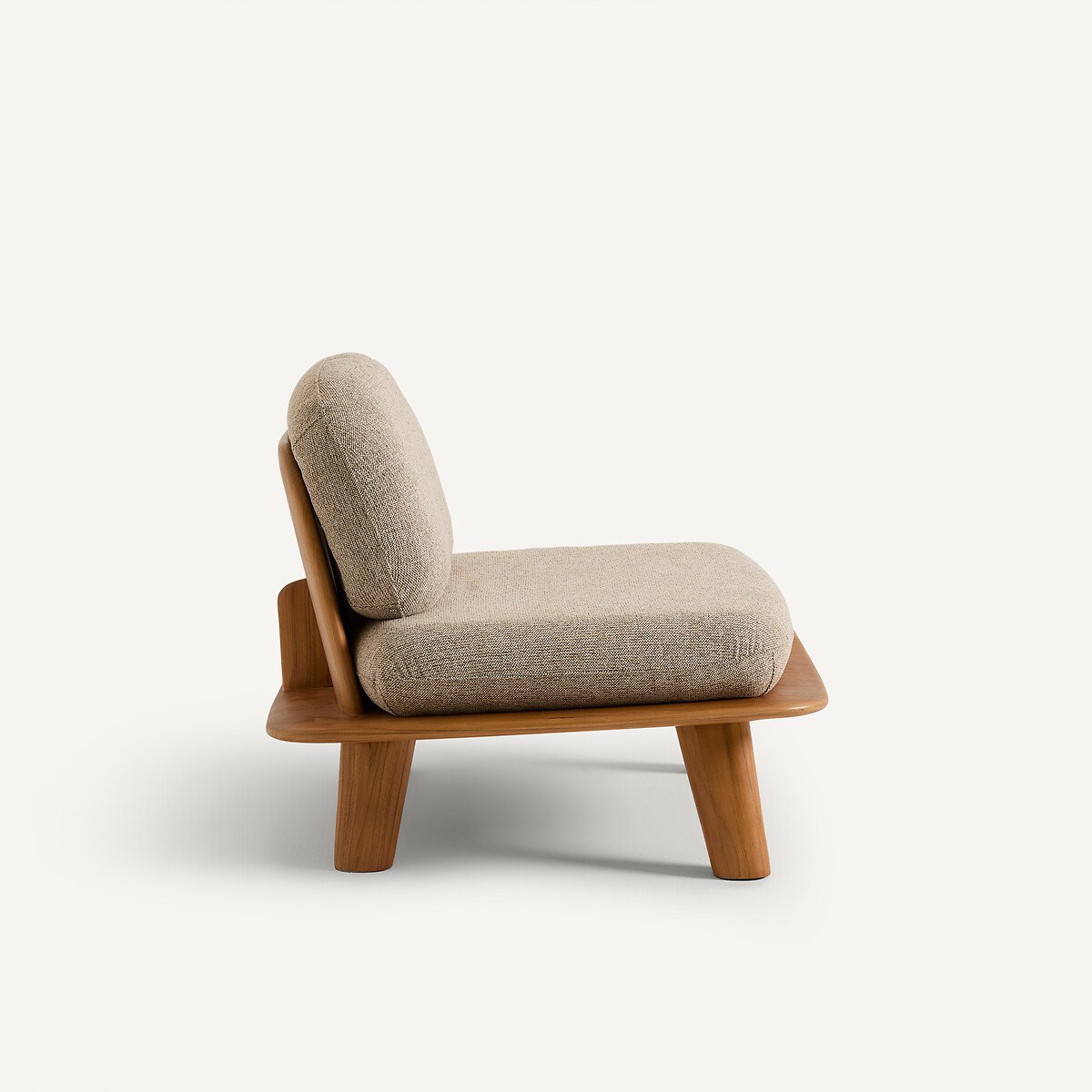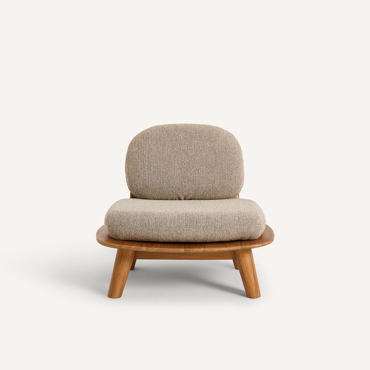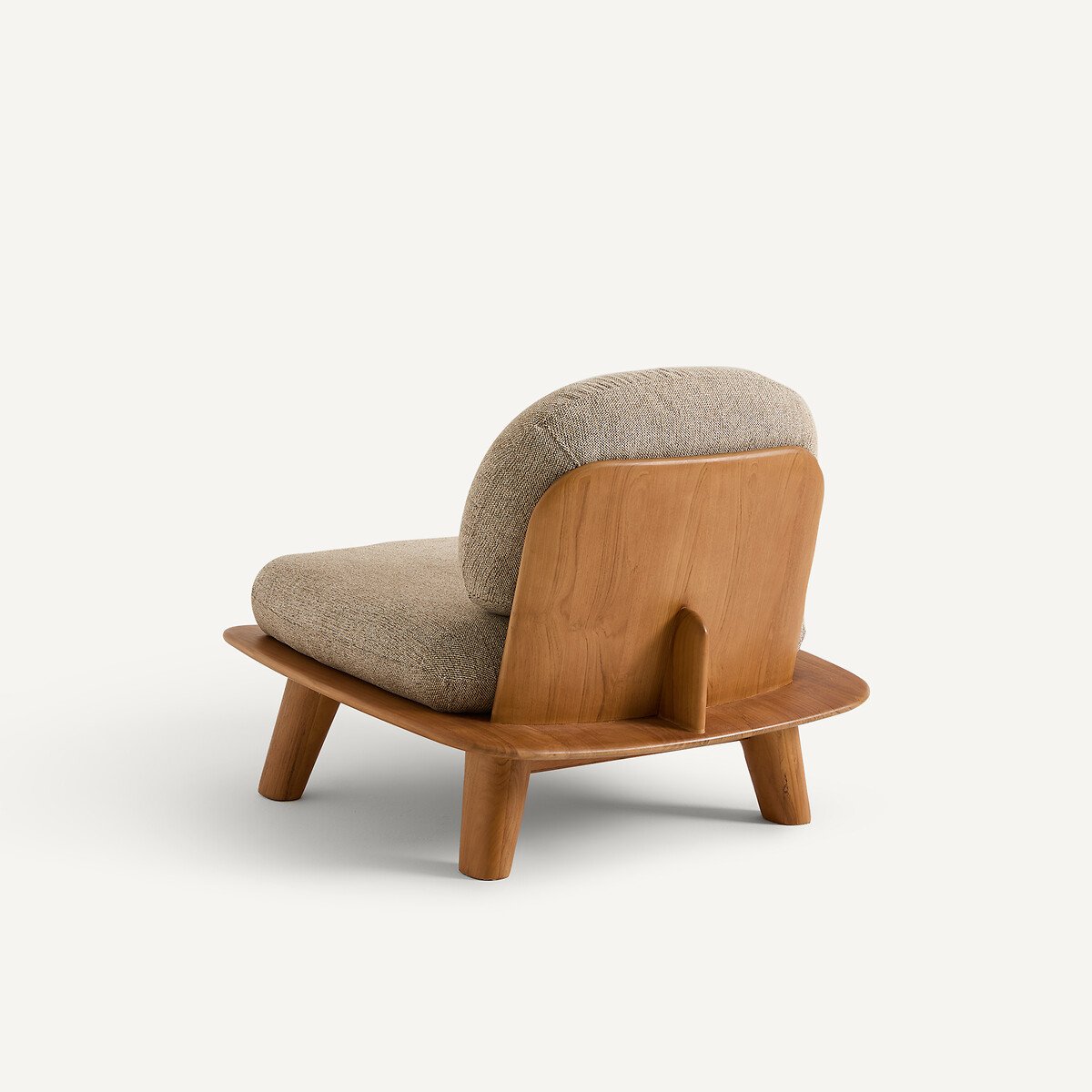 Это кресло из массива тикового дерева сочетает в себе этнические мотивы и современную эстетику. Скульптурный каркас подчеркивает природную текстуру и прожилки дерева. Ножки в форме оживала и детали, напоминающие крылья самолета, визуально облегчают его низкий и широкий силуэт.Толстые подушки в форме гальки подчеркивают его изогнутые линии и придают изысканность всему интерьеру. Творение AMPM.Жесткость спинки: высокаяЖесткость сиденья: высокаяПоддержка: средняяОписание • Цельный чехол для подушки (сиденье и спинка) из меланжевой ткани (100% полиэстер), плотность 518 г/м² • Съемная подушка. Внутренний каркас подушки из фанеры тополя • Нескользящая ткань на оборотной стороне подушки сиденья • Каркас из массива тика, отделка: натуральное деревоНаполнитель • Сиденье: наполнитель: пенополиуретан плотностью 30 кг/м³ и 38 кг/м³, а также наполнитель из полиэфирного волокна • Спинка: наполнитель: пенополиуретан плотностью 20 кг/м³, а также наполнитель из полиэфирного волокнаКачество • Это кресло изготовлено из массива дерева — живого и благородного материала. Со временем на нем могут появиться небольшие естественные изменения, например, едва заметные трещинки, которые лишь подчеркивают его подлинность, уникальный характер и высокое качество.Уход • Несъемный чехол подушки • ХимчисткаКачество • Гарантия 2 года: обивка и пеноматериалРазмеры • Ширина: 84,5 см • Высота: 62 см • Глубина: 85,5 см • Сиденье: Д73 x В41 x Г49 см • Продается в собранном виде. • ДРЕВЕСИНА ИЗ УСТОЙЧИВО УПРАВЛЯЕМЫХ ЛЕСОВ. Наличие знака FSC® означает, что древесина, из которой изготовлено изделие, добыта с соблюдением международных стандартов: в процессе добычи не были нарушены права коренных народов, местных жителей и работников, и заготовка велась методом устойчивого лесопользования.Размеры и вес упаковкиДве упаковки • Ш94 x В66 x Д94 см, 35 кг • Ш76 x В33 x Д67 см, 12 кг