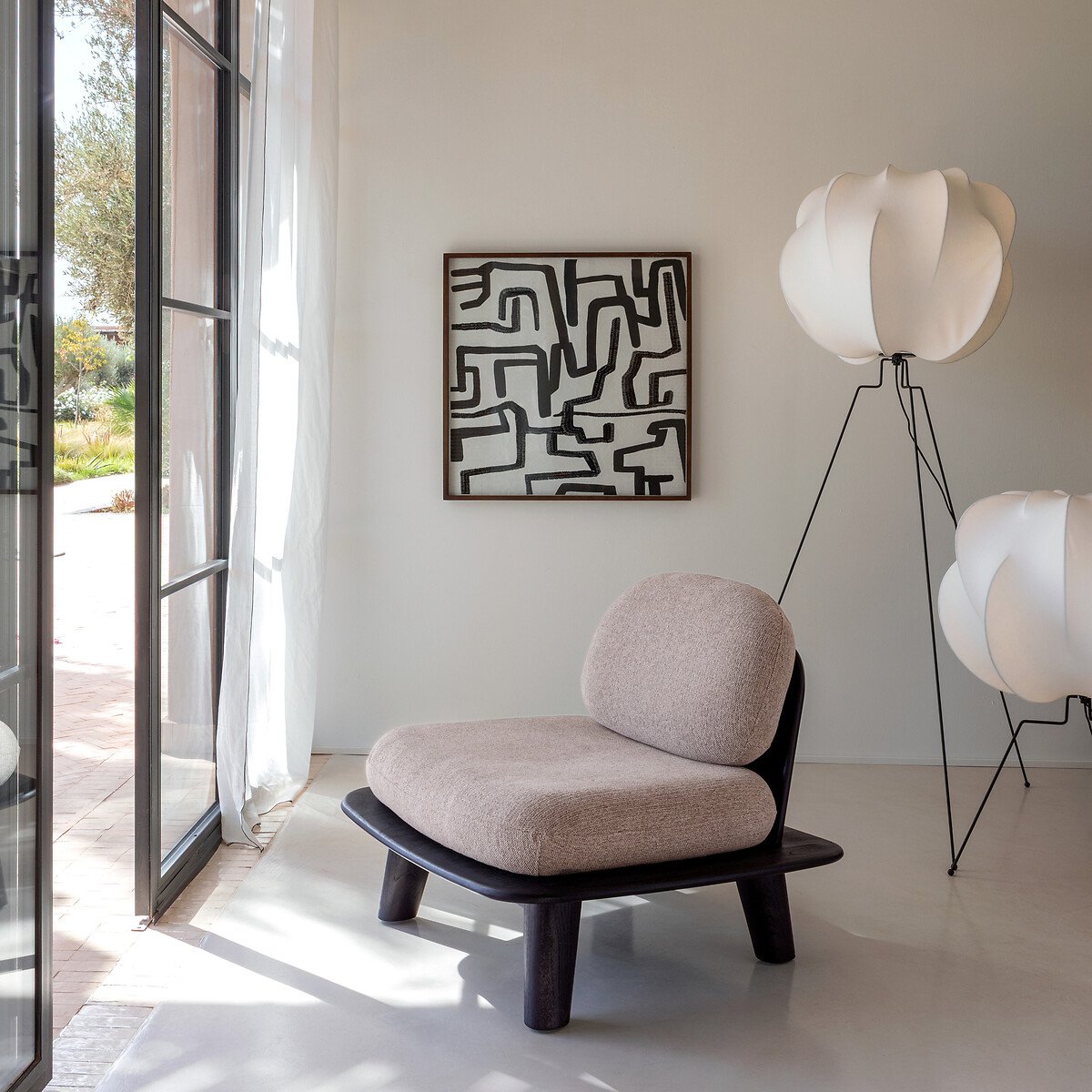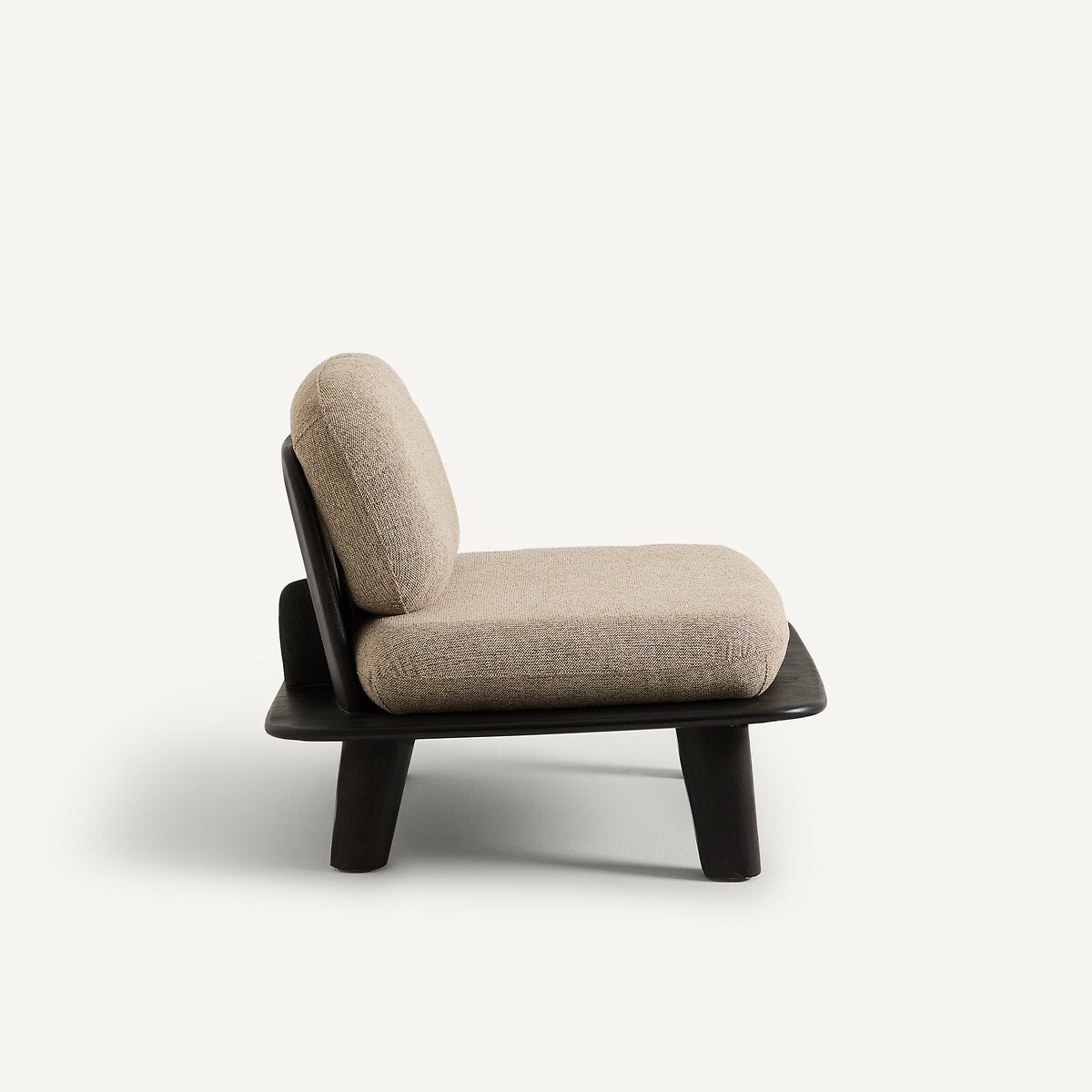 Это кресло из массива тикового дерева сочетает в себе этнические мотивы и современную эстетику. Скульптурный каркас подчеркивает природную текстуру и прожилки дерева. Ножки в форме оживала и детали, напоминающие крылья самолета, визуально облегчают его низкий и широкий силуэт.Толстые подушки в форме гальки подчеркивают его изогнутые линии и придают изысканность всему интерьеру. Творение AMPM.Жесткость спинки: высокаяЖесткость сиденья: высокаяПоддержка: средняяОписание • Цельный чехол для подушки (сиденье и спинка) из меланжевой ткани (100% полиэстер), плотность 518 г/м² • Съемная подушка. Внутренний каркас подушки из фанеры тополя • Нескользящая ткань на оборотной стороне подушки сиденья • Каркас из массива тика, отделка: дерево с тонировкой жареный кофеНаполнитель • Сиденье: наполнитель: пенополиуретан плотностью 30 кг/м³ и 38 кг/м³, а также наполнитель из полиэфирного волокна • Спинка: наполнитель: пенополиуретан плотностью 20 кг/м³, а также наполнитель из полиэфирного волокнаКачество • Это кресло изготовлено из массива дерева — живого и благородного материала. Со временем на нем могут появиться небольшие естественные изменения, например, едва заметные трещинки, которые лишь подчеркивают его подлинность, уникальный характер и высокое качество.Уход • Несъемный чехол подушки • ХимчисткаКачество • Гарантия 2 года: обивка и пеноматериалРазмеры • Ширина: 84,5 см • Высота: 62 см • Глубина: 85,5 см • Сиденье: Д73 x В41 x Г49 см • Продается в собранном виде. • ДРЕВЕСИНА ИЗ УСТОЙЧИВО УПРАВЛЯЕМЫХ ЛЕСОВ. Наличие знака FSC® означает, что древесина, из которой изготовлено изделие, добыта с соблюдением международных стандартов: в процессе добычи не были нарушены права коренных народов, местных жителей и работников, и заготовка велась методом устойчивого лесопользования.Размеры и вес упаковкиДве упаковки • Ш94 x В66 x Д94 см, 35 кг • Ш76 x В33 x Д67 см, 12 кг