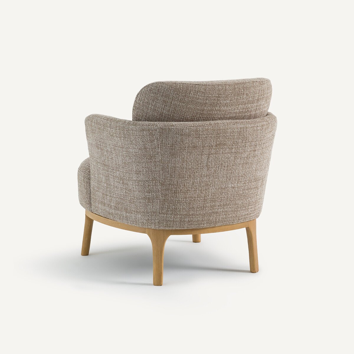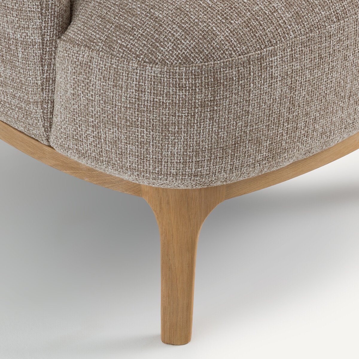 Изящные обволакивающие подлокотники. Широкая спинка с закругленными углами, синонимом наивысшего комфорта. Все эти элементы, сложенные вместе, создают гармоничное кресло с плавным классическим силуэтом. Изысканная деталь — вытянутые ножки из орехового дерева — подчеркивают форму сиденья.