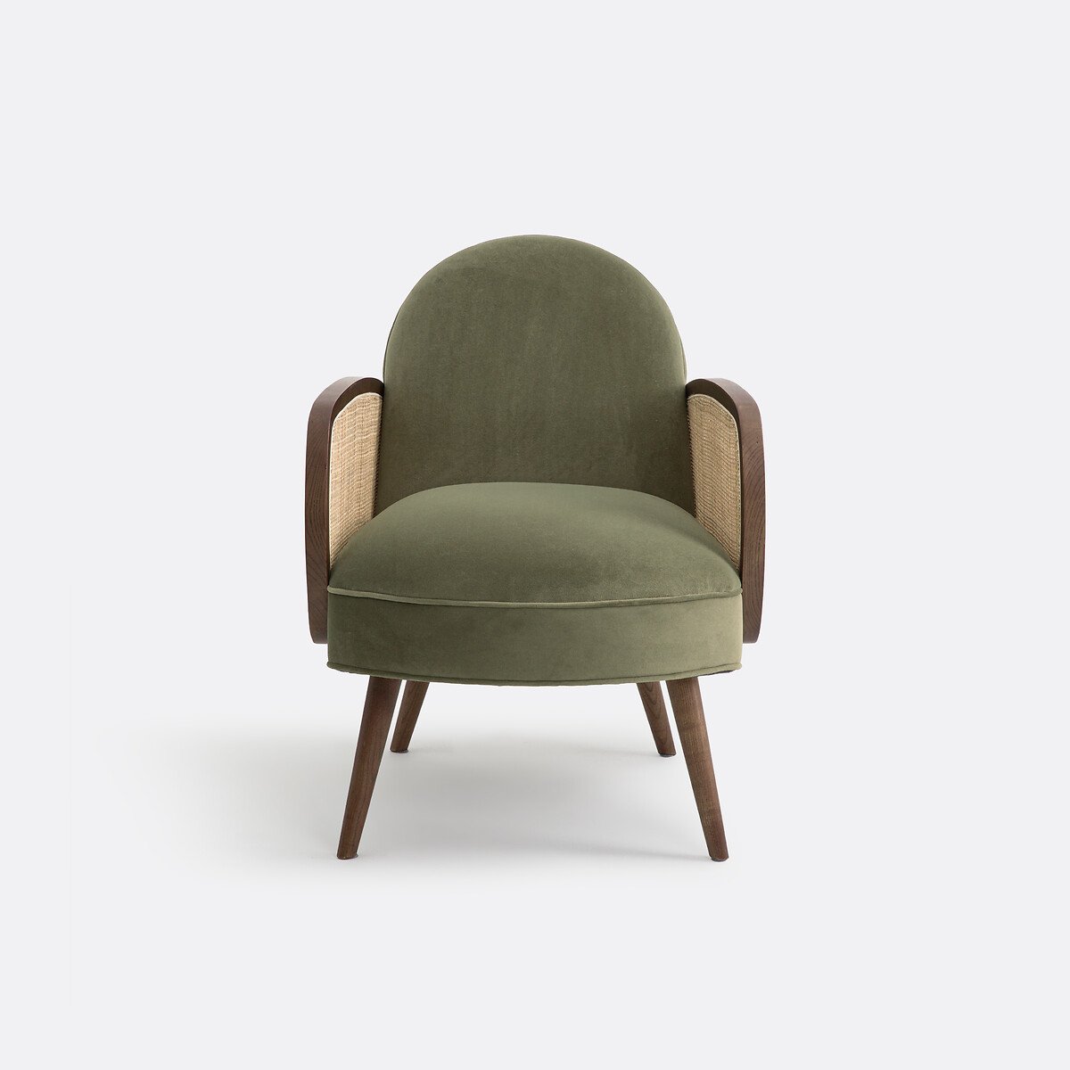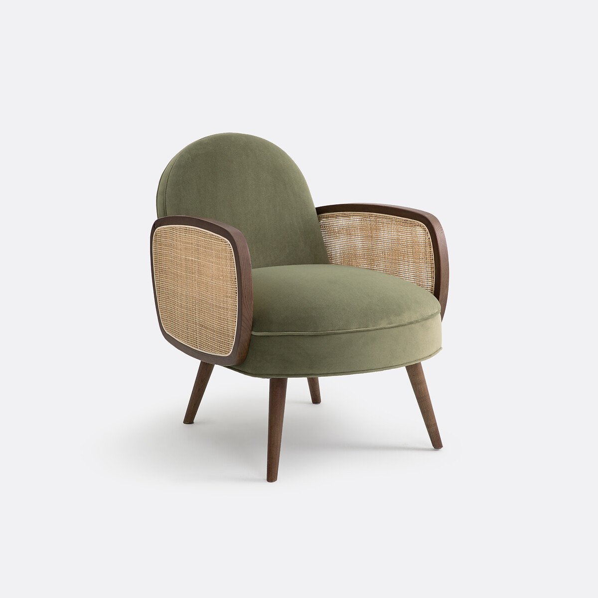 Собственный дизайн от Адриана Эделя: Для создания Buisseau я хотел переосмыслить культовую эстетику 50-х годов, сочетая подлокотники в форме крыльев самолета, короткую спинку, упругое сиденье и конические ножки. В этом компактном ярком кресле сочетается тепло бархата, мягкий цвет орехового дерева и нежное изящество тростникового плетения. Все изгибы и округлости приглашают вас сделать только одну вещь: отдохнуть.