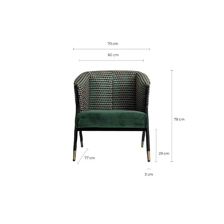 Кресло Kelheim от дома VICAL — это выражение современности. Это современное бархатное кресло размером 73x83x80 см сочетает в себе мягкость зеленого бархата с прочностью соснового дерева, предлагая роскошное сиденье, которое одновременно радует глаз и обеспечивает непревзойденный комфорт.