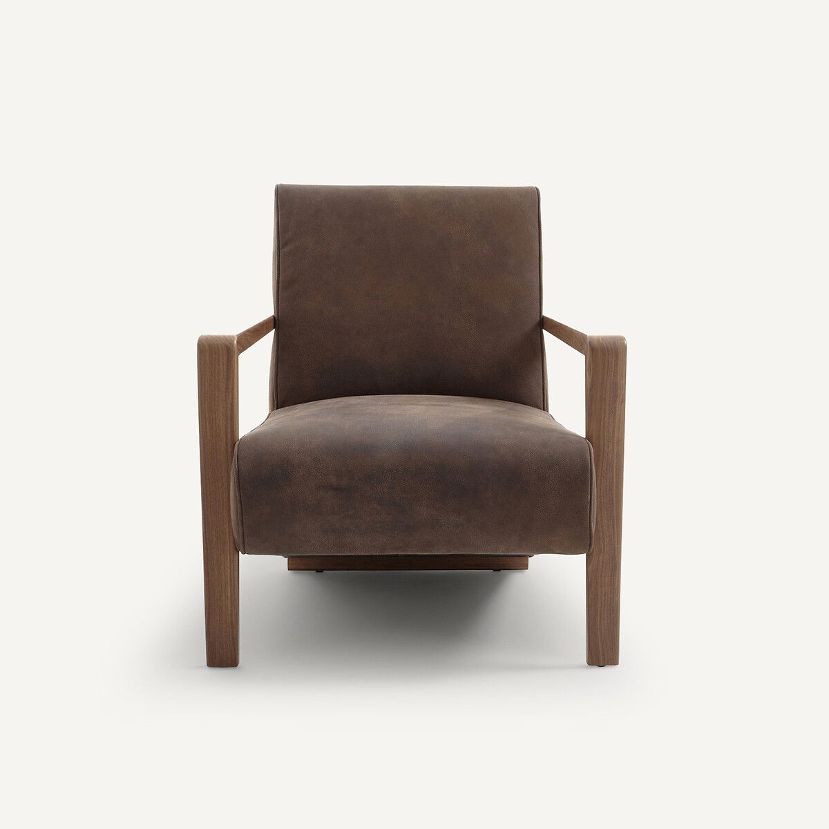 Модель с комфортной наклоненной спинкой, элегантными подлокотниками и обивкой из благородной бычьей кожи окружает комфортом и повторяет силуэт сидящего. Sanami гармонично дополнит как пространство гостиной, так и кабинета в духе строгой классики, чтобы вы могли сосредоточиться на работе.