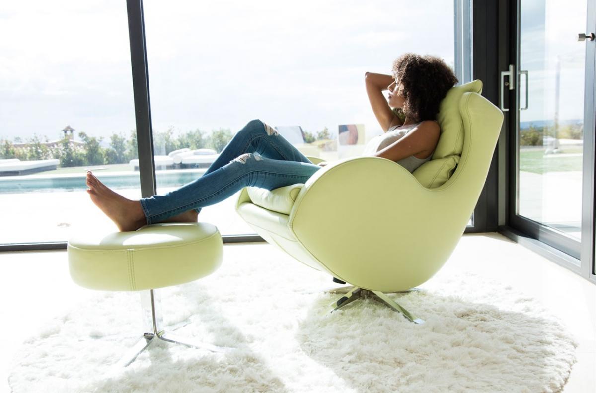Lenny, пожалуй, наш самый знаковый дизайн, умная комбинация вогнутых и выпуклых кривых, которые создают уникальное и неповторимое кресло. Его сиденье и подушки спинки предлагают невероятный комфорт. Основание представляет собой поворотный и качающийся механизм. Круглая подставка для ног - идеальный аксессуар, чтобы сделать Lenny удивительно комфортным предметом.
