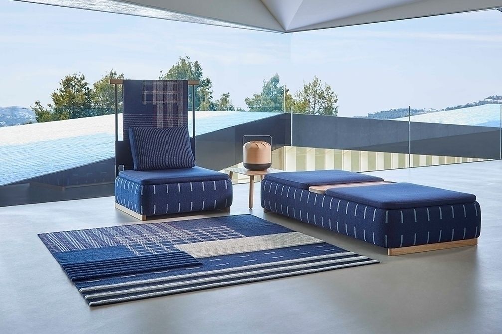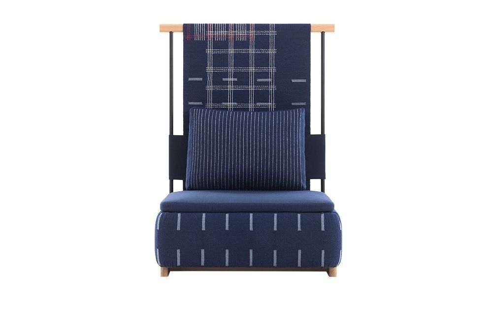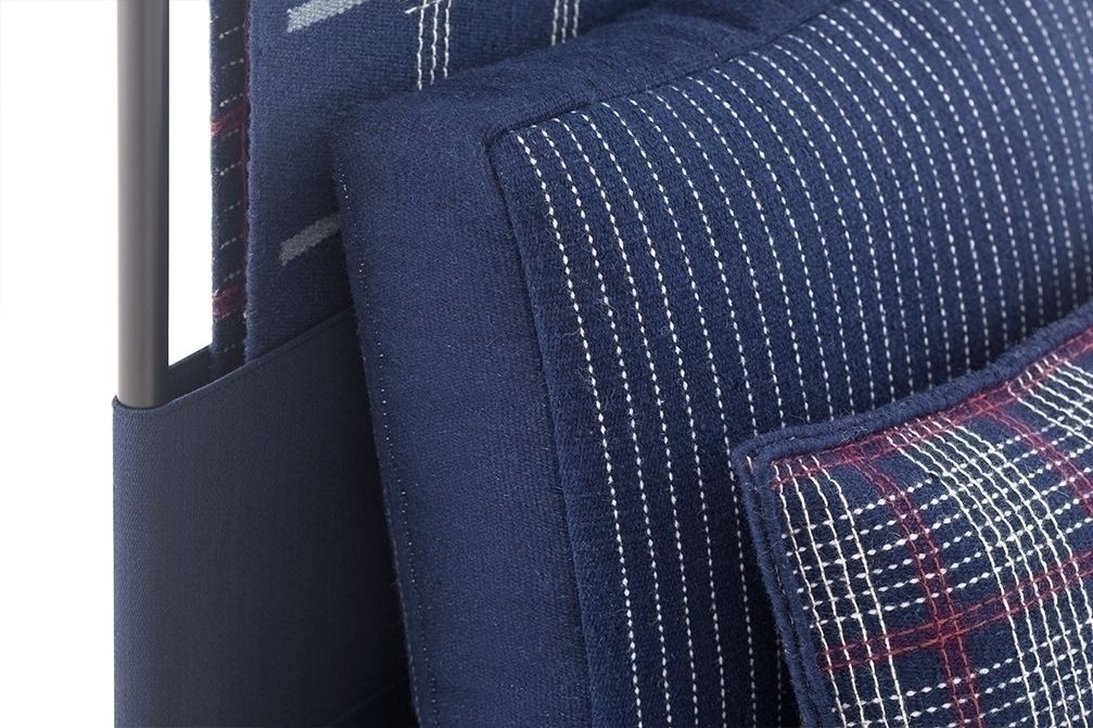 100% шерсть. Древесина дуба с матовой отделкой и рама из термолакированной стали. Наполнитель из поролона.