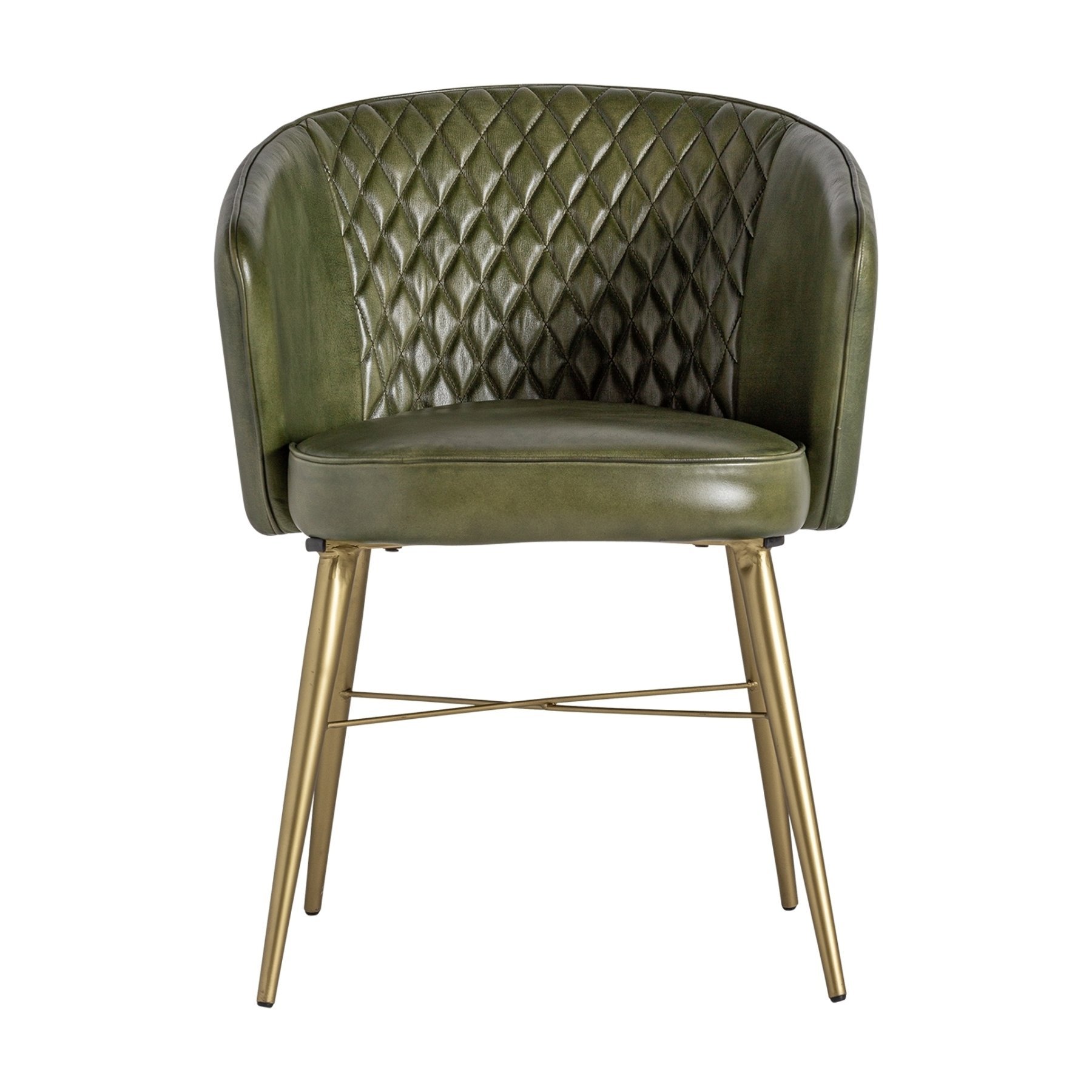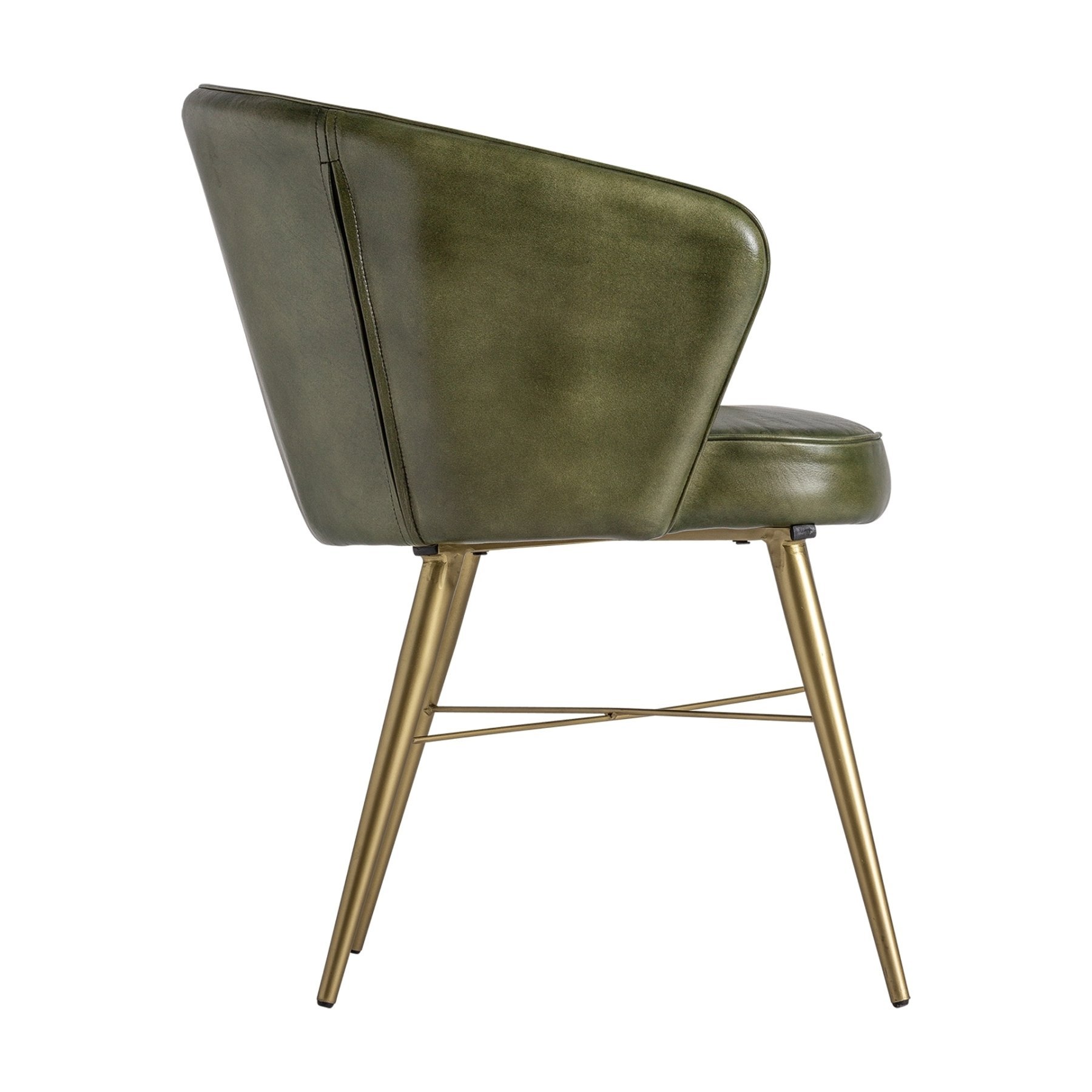 Кресло Muncie, цвет зеленый/золотой, винтажный стиль. Изготовлен из кожи в сочетании с древесиной сосны. Съемное изделие.