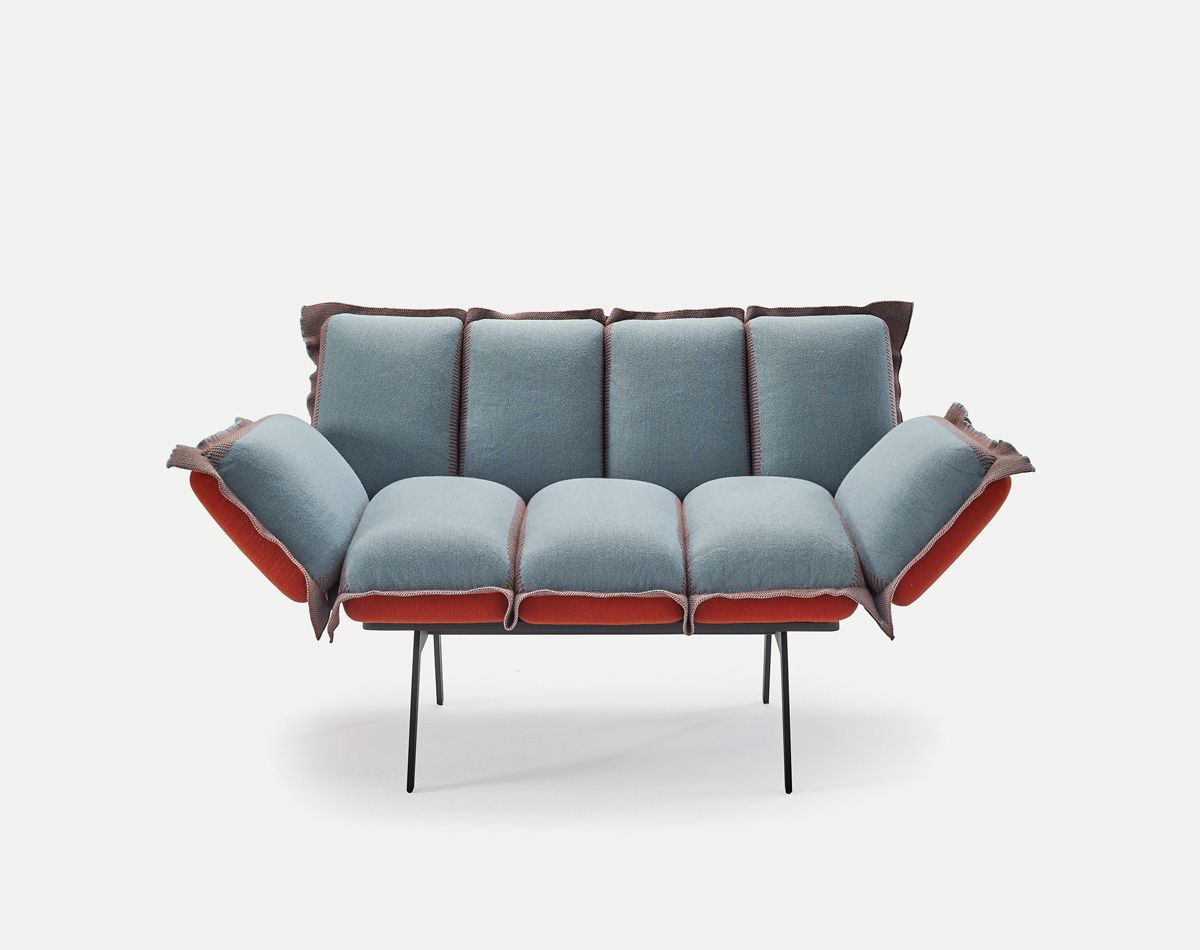 Next Stop основан на схеме сидений, сделанных из трех подушек в текстильном чехле, которые используются для создания длинных или коротких банкеток. Могут быть добавлены подлокотники, чтобы сделать двух- и трехместный диван, а также кресла. Некоторые конфигурации оставляют часть структуры без подушек для установки столешницы. Два размера пуфа и дополнительный