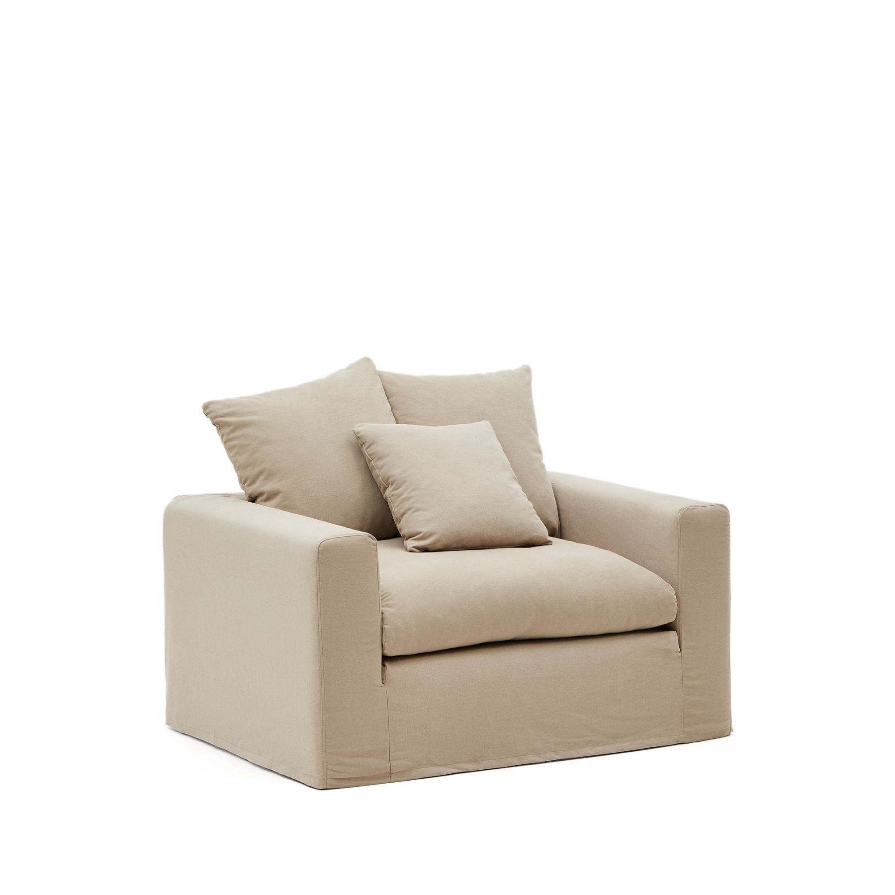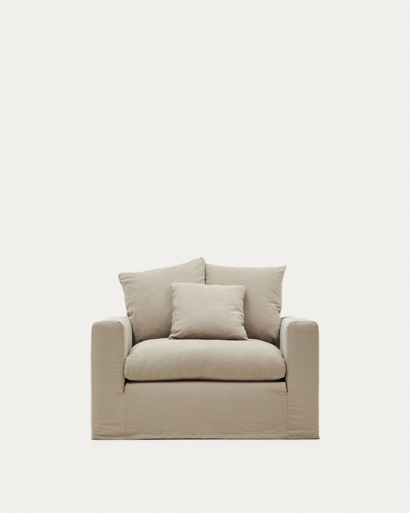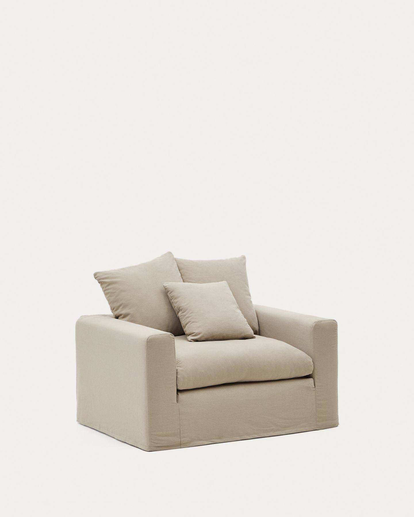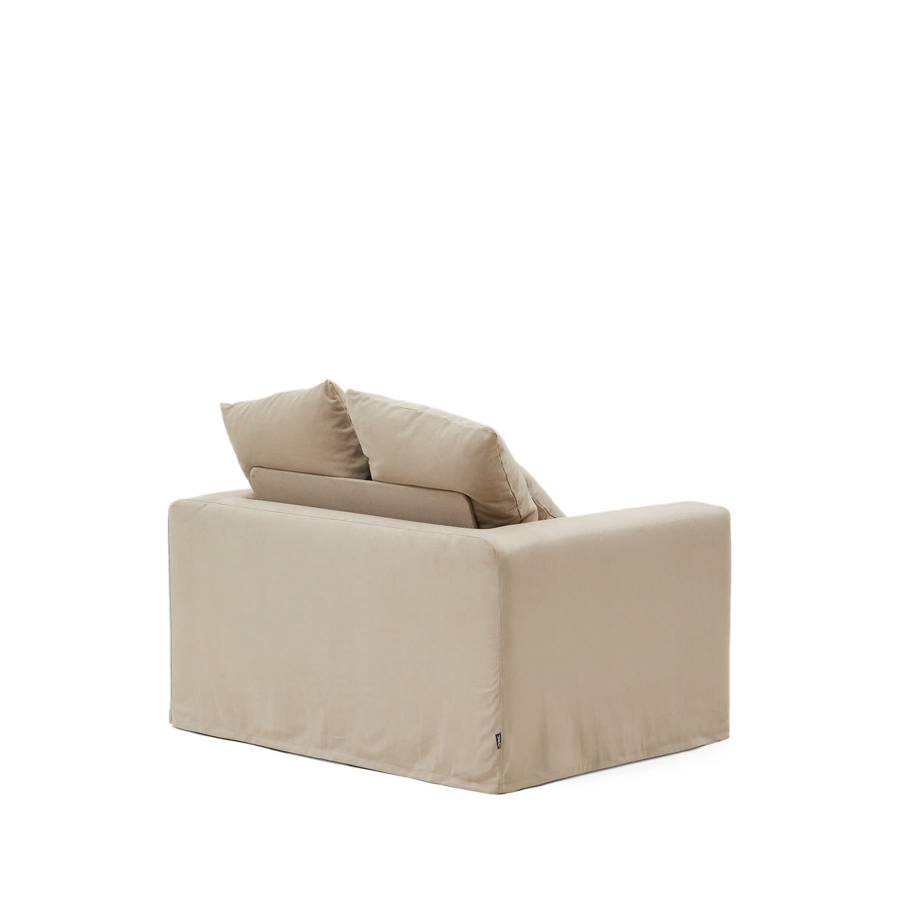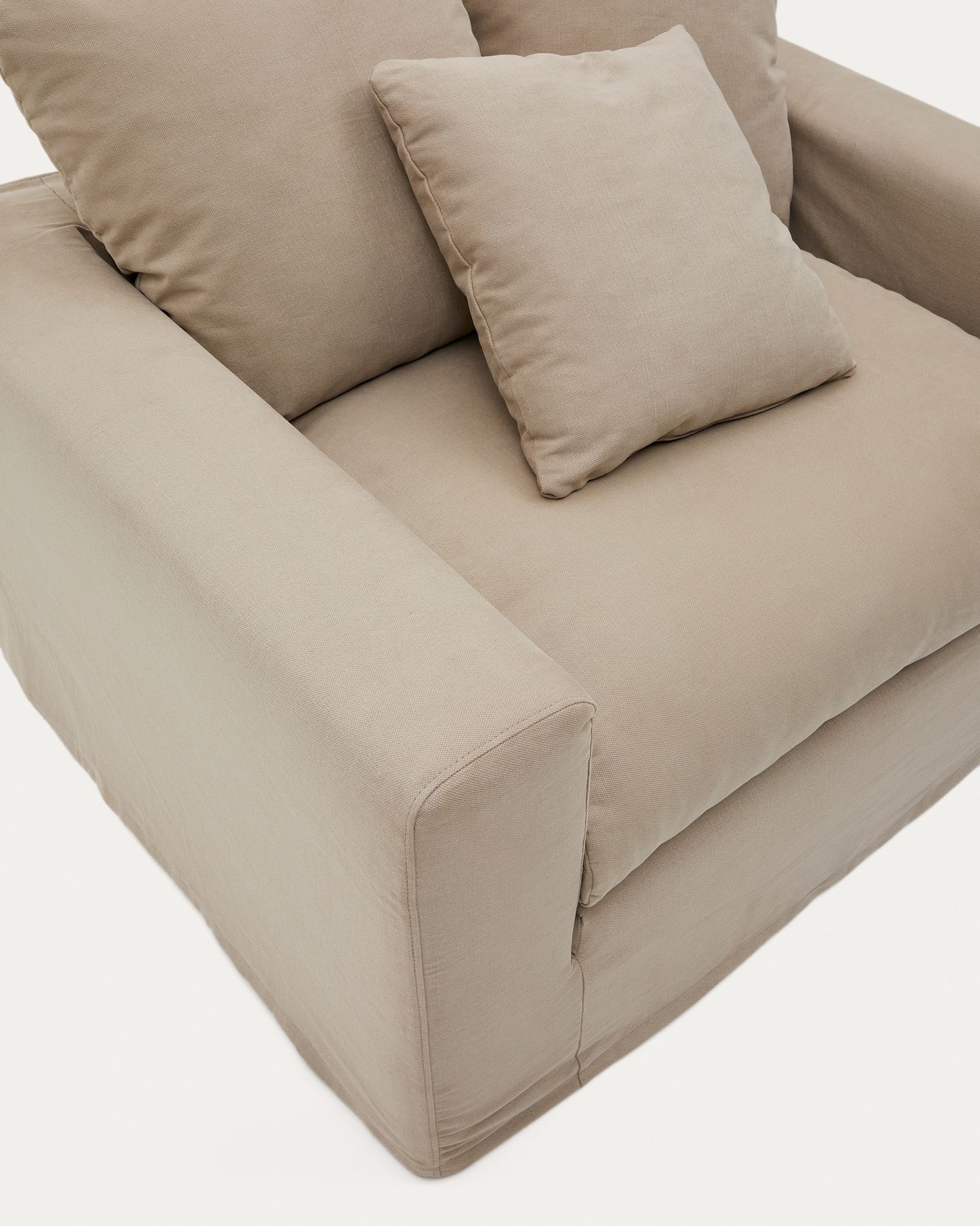 Nora сочетает естественную элегантность льняной и хлопчатобумажной ткани с дизайном прямой линии. Его большие размеры и подушки, наполненные пенопластовой крошкой и переработанными волокнами ПЭТ с эффектом прижима, делают его мягким сиденьем, которым можно наслаждаться в компании других.
