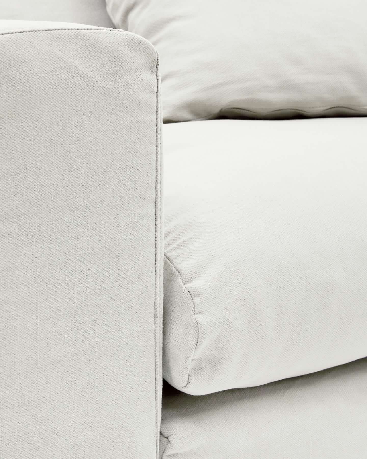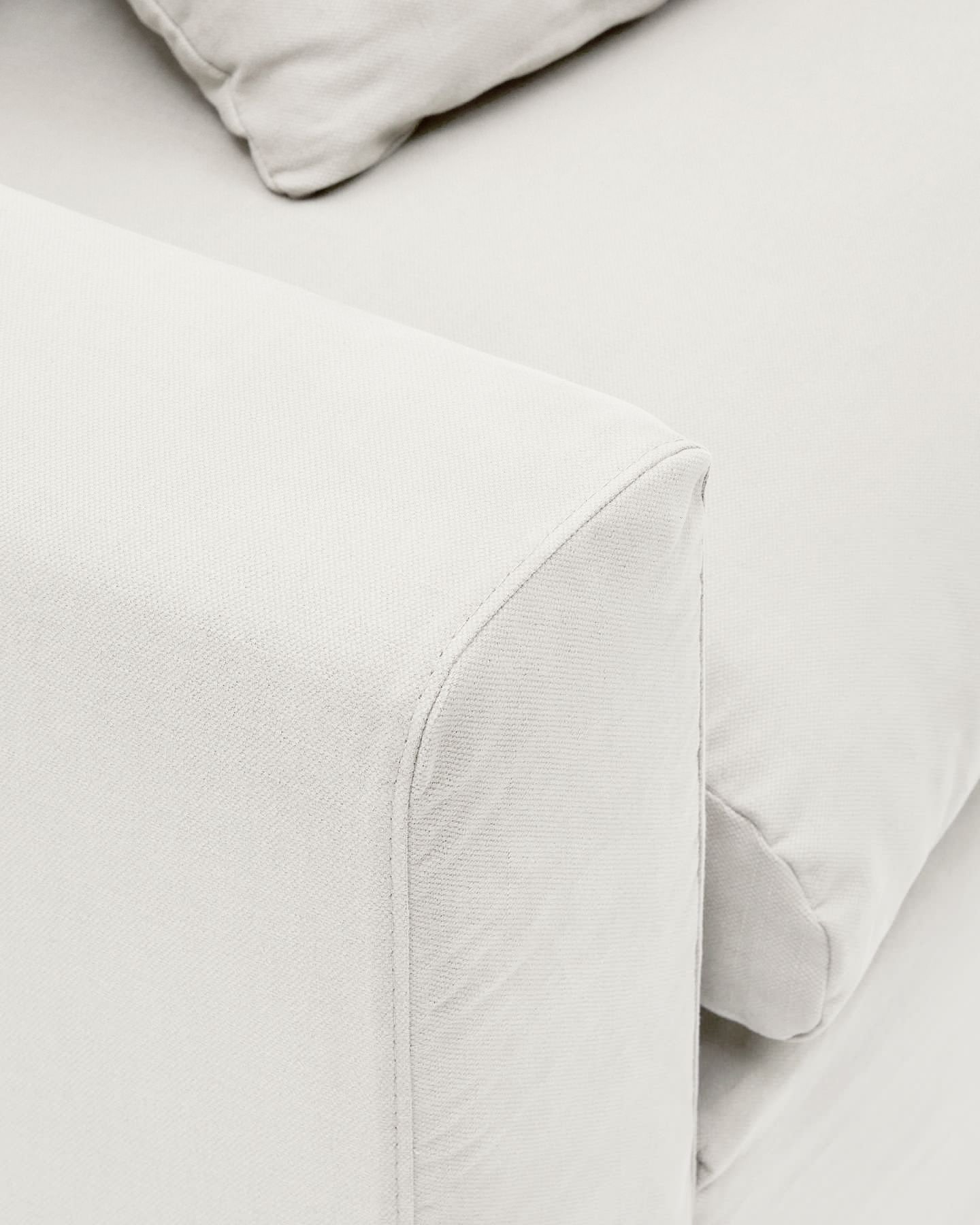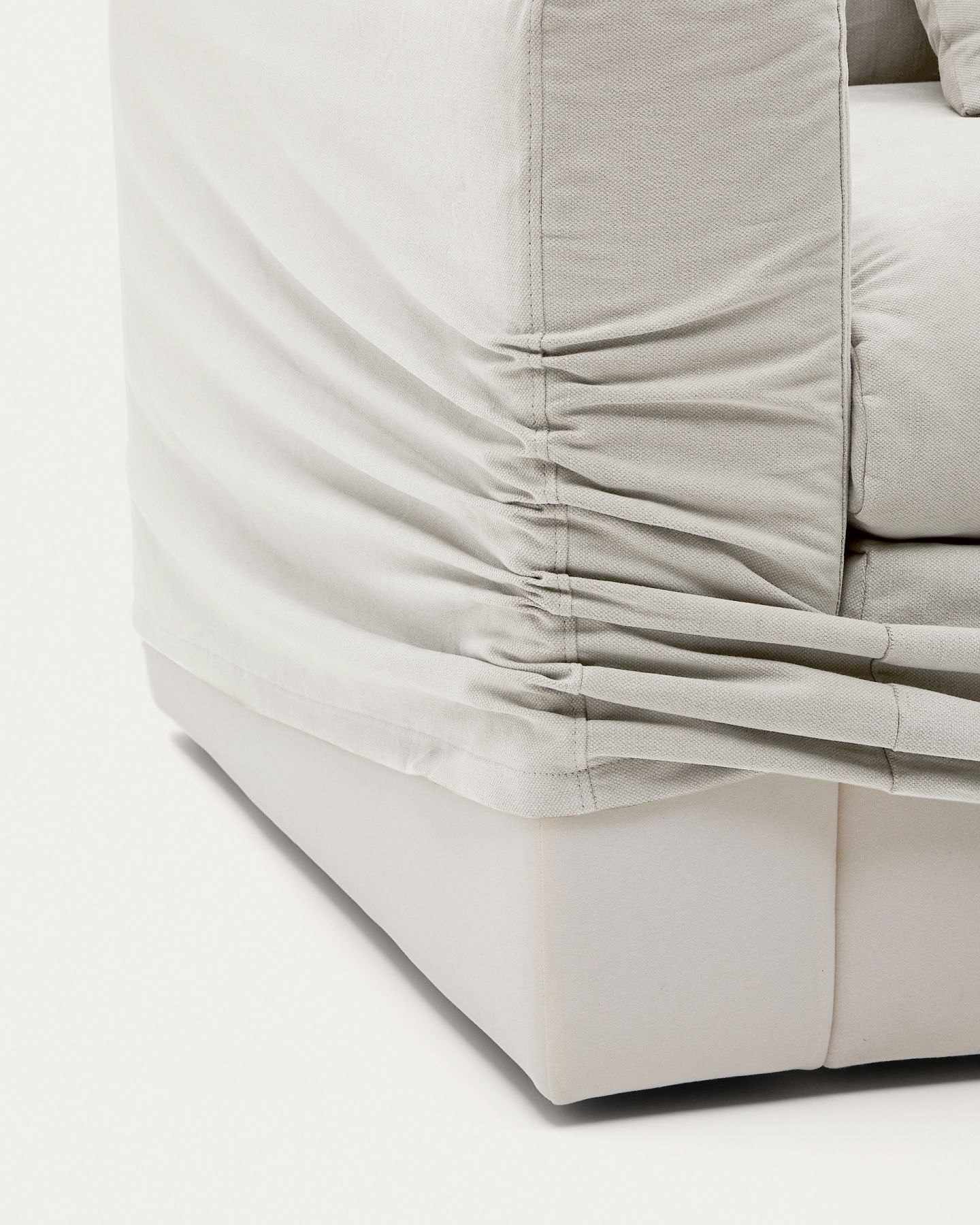 Nora сочетает естественную элегантность льняной и хлопчатобумажной ткани с дизайном прямой линии. Его большие размеры и подушки, наполненные пенопластовой крошкой и переработанными волокнами ПЭТ с эффектом прижима, делают его мягким сиденьем, которым можно наслаждаться в компании других.