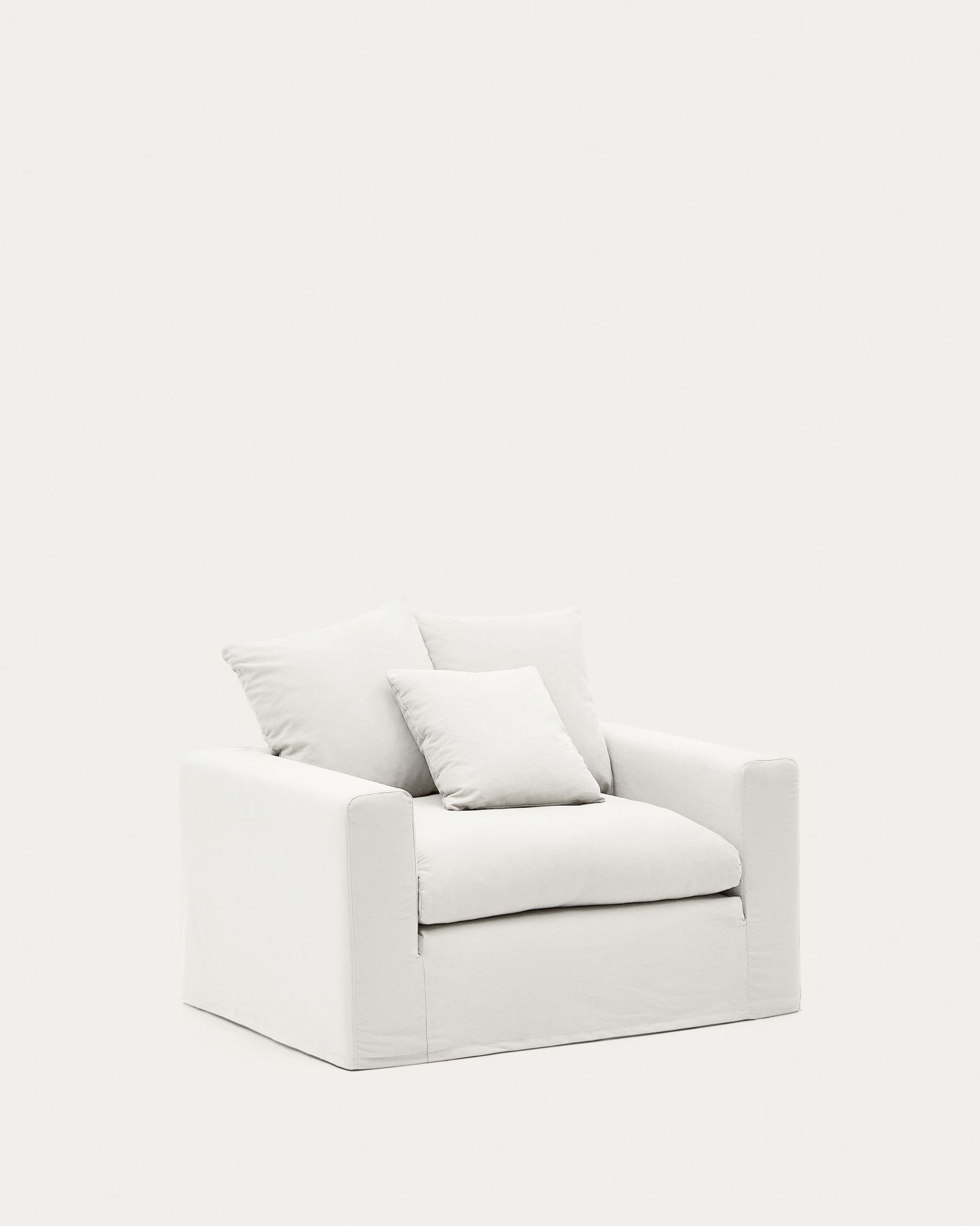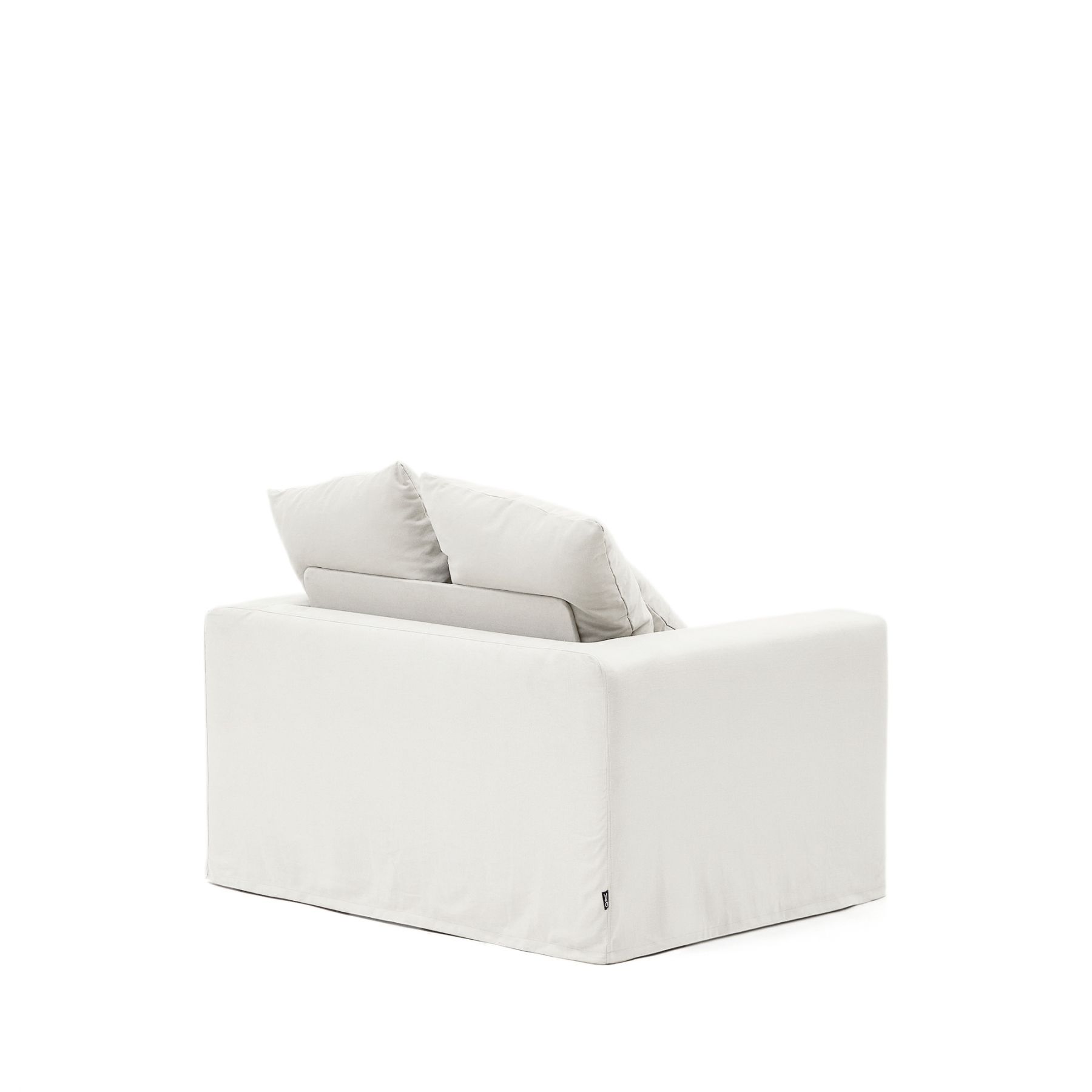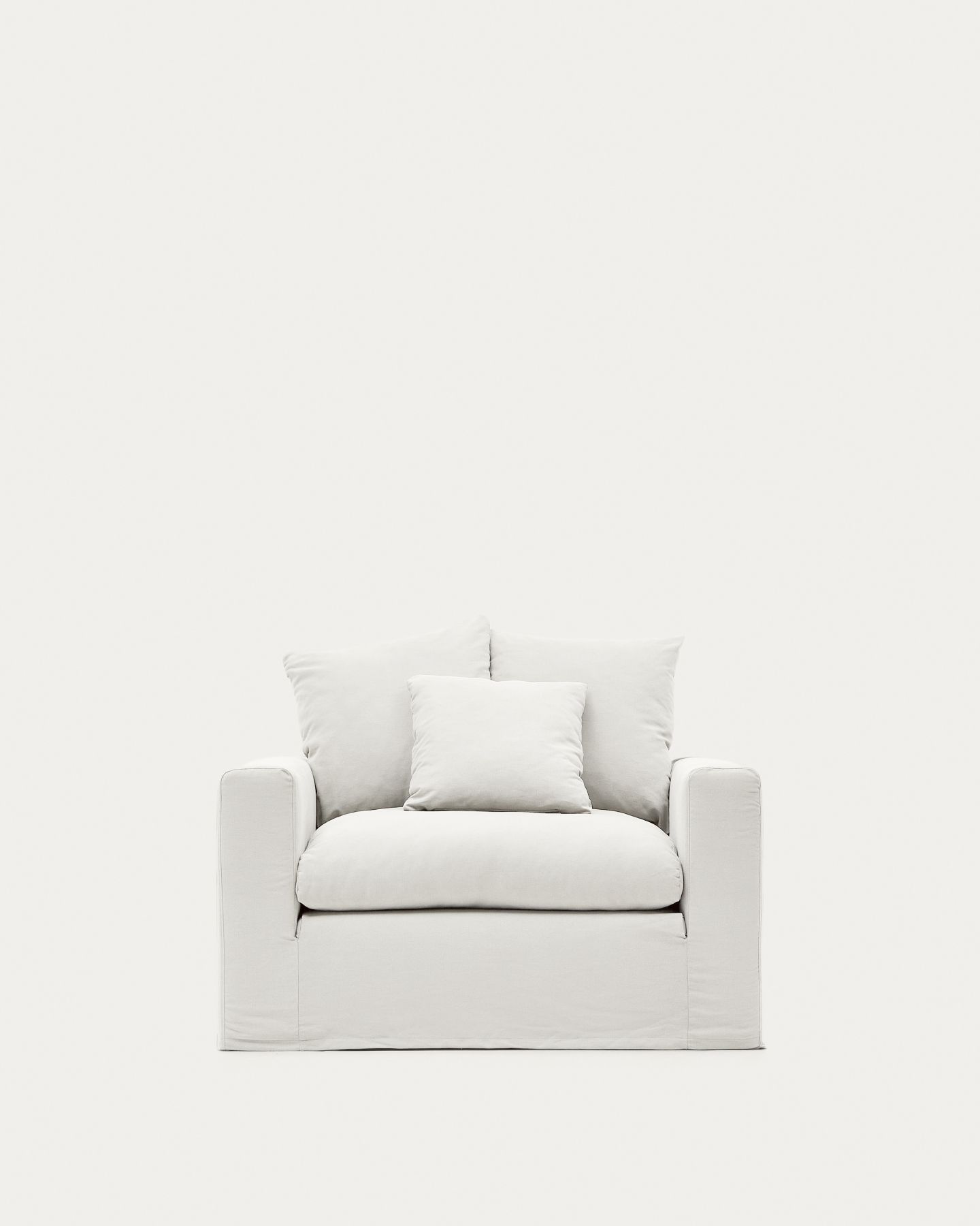 Nora сочетает естественную элегантность льняной и хлопчатобумажной ткани с дизайном прямой линии. Его большие размеры и подушки, наполненные пенопластовой крошкой и переработанными волокнами ПЭТ с эффектом прижима, делают его мягким сиденьем, которым можно наслаждаться в компании других.
