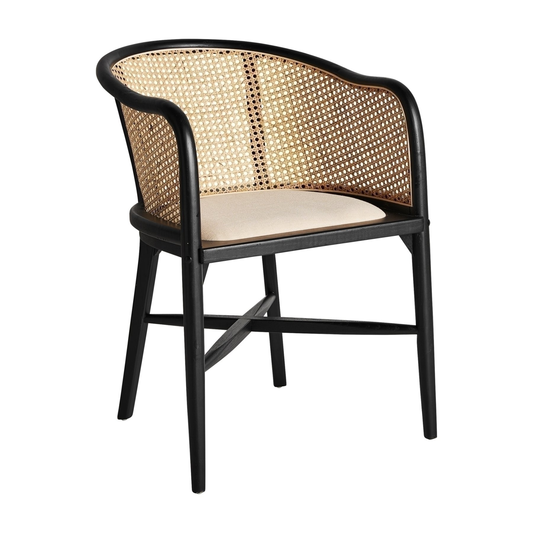 Кресло Nuchis в черном/натуральном цвете, в современном стиле. Изготовлен из березового дерева в сочетании с льном.