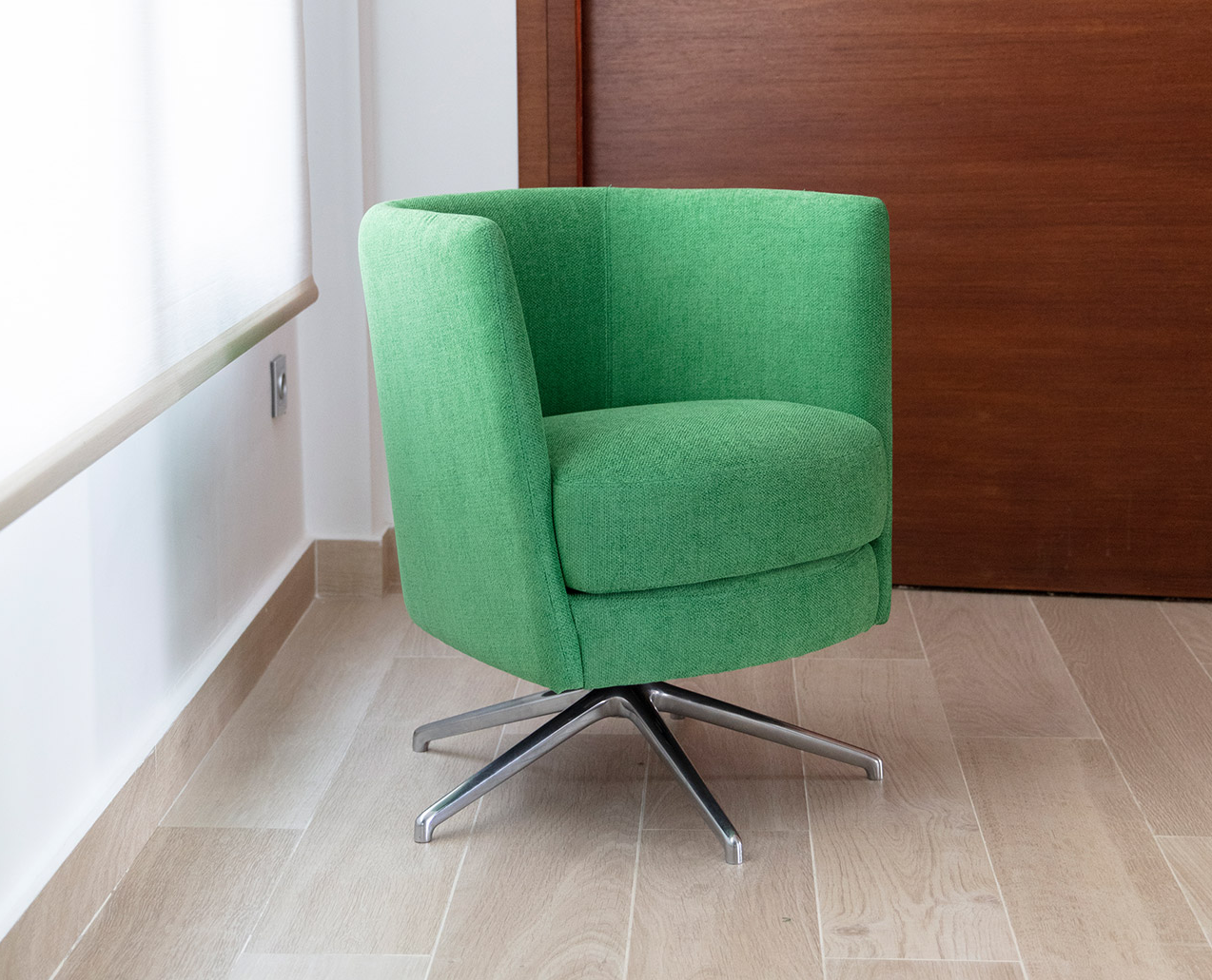 Это новый акцентный стул с уменьшенными размерами, обеспечивающий исключительный комфорт. Варианты ножек: деревянные, металлические или поворотные.