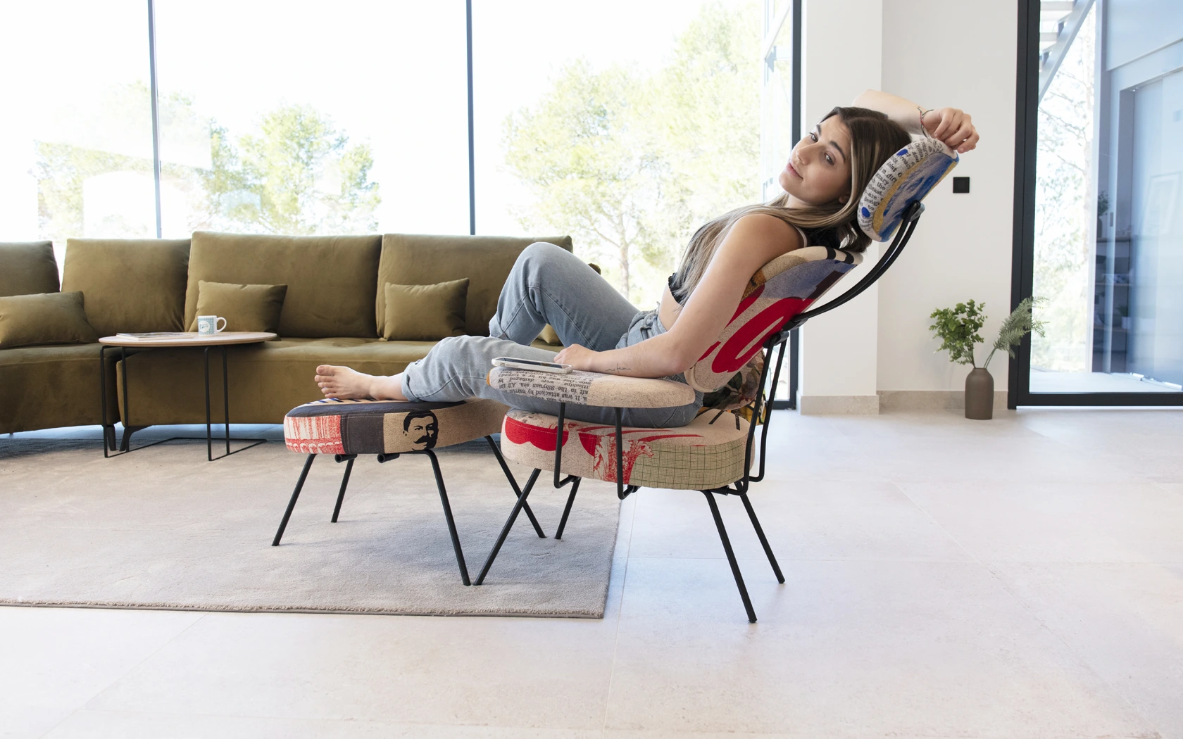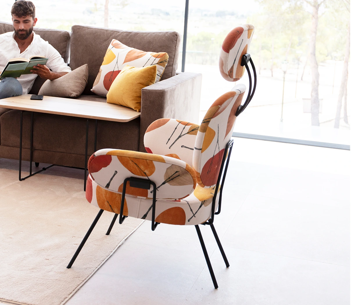 Особое внимание следует уделить шарнирной системе всех частей спинки, которая позволяет каждому элементу естественным образом адаптироваться к различным положениям, которые мы можем принять. Подлокотники также шарнирные, их можно поворачивать и устанавливать в горизонтальное положение, предлагая нам интеллектуальное решение для поддержки нашего мобильного телефона и возможности его эргономичного использования. Получившийся в результате дизайн, рожденный из функциональности, предлагает нам эффектный предмет в стиле ретро, напоминающий нам муравья, отсюда и его название (муравей по-французски). В зависимости от количества используемых элементов (1-2-3-4 или 5) добавляется числовой суффикс, который помогает нам идентифицировать различные типы продукта. Мы также включили небольшой столик для аксессуаров в тон.