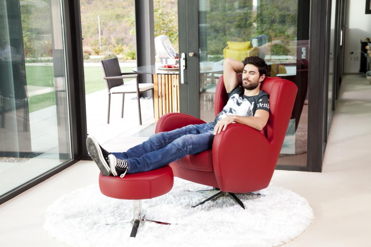 Благодаря привлекательному дизайну изогнутых форм Romeo представляет собой очень удобное кресло большого размера. Он родился от модели Ленни, но с несколько более мужским стилем. Он оснащен хромированным поворотным и качающимся основанием. Идеально сочетается с любой моделью дивана или углового блока.