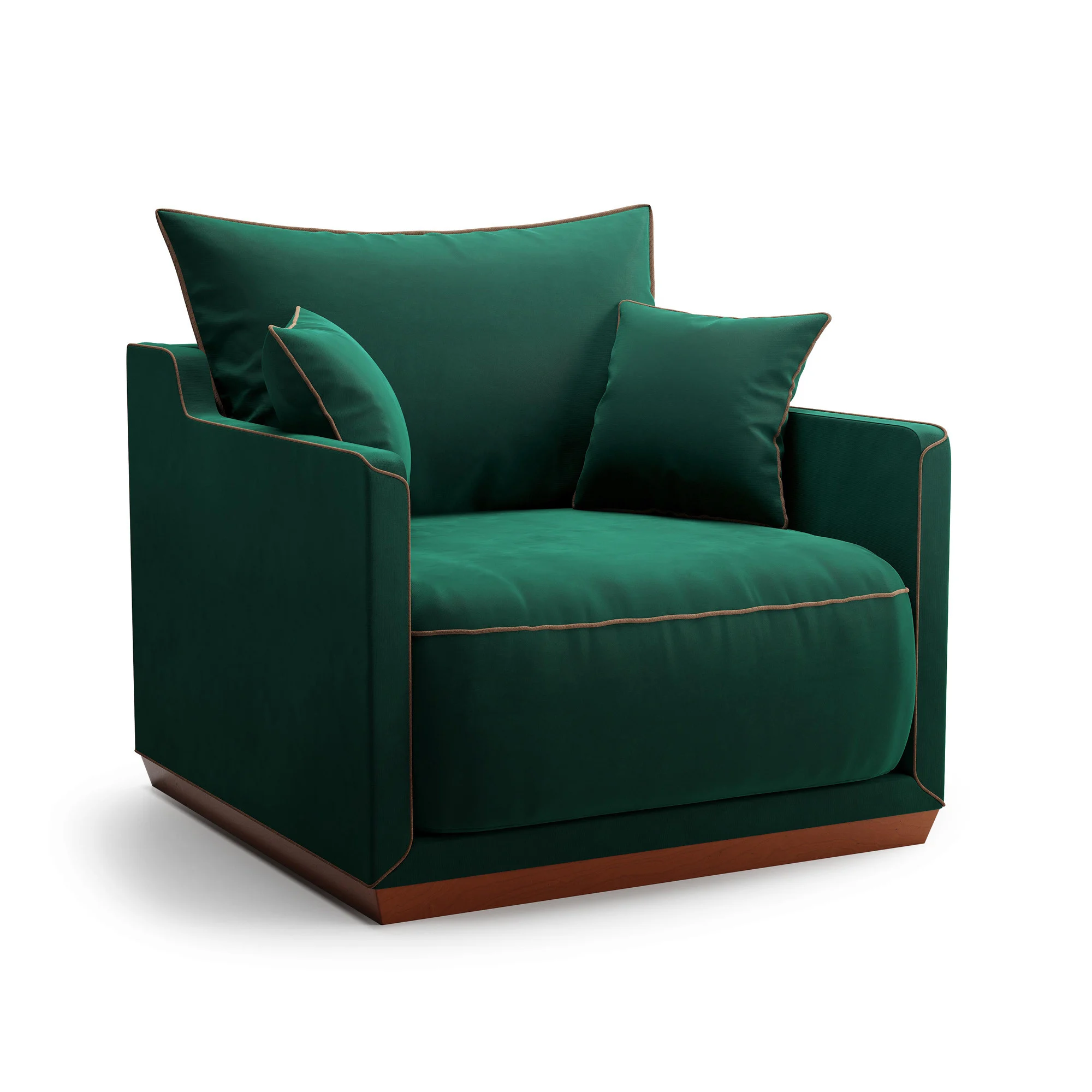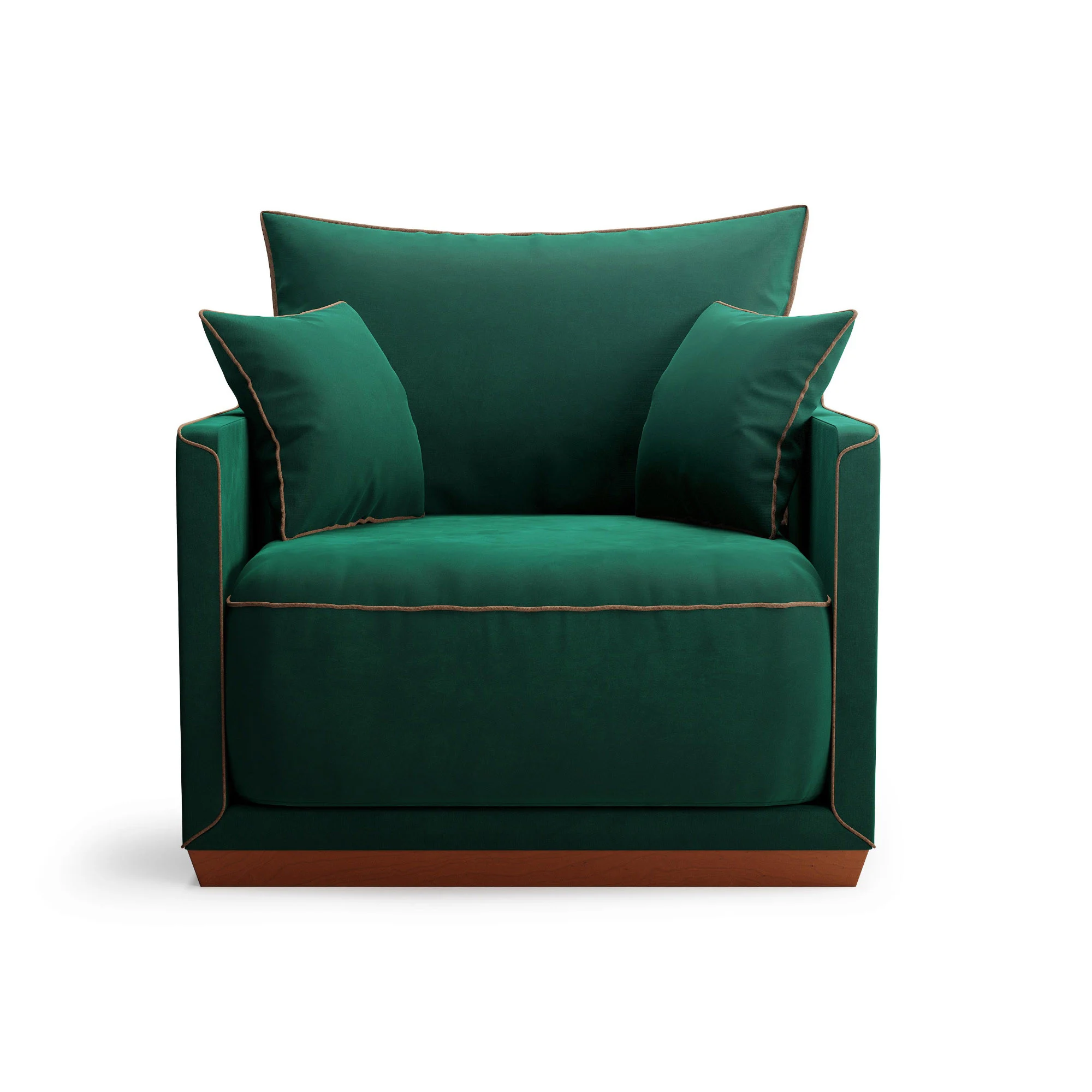 Изысканные изгибы боковых линий и контрастная окантовка придают креслу неповторимую изюминку, а прочный каркас из массива березы и съемные чехлы говорят об особенном внимании к деталям.