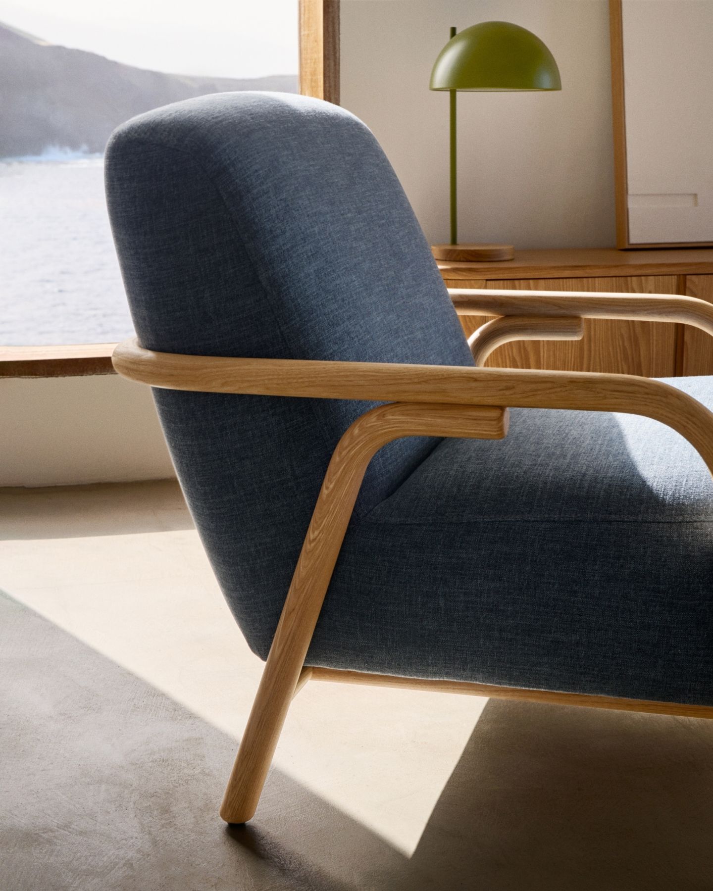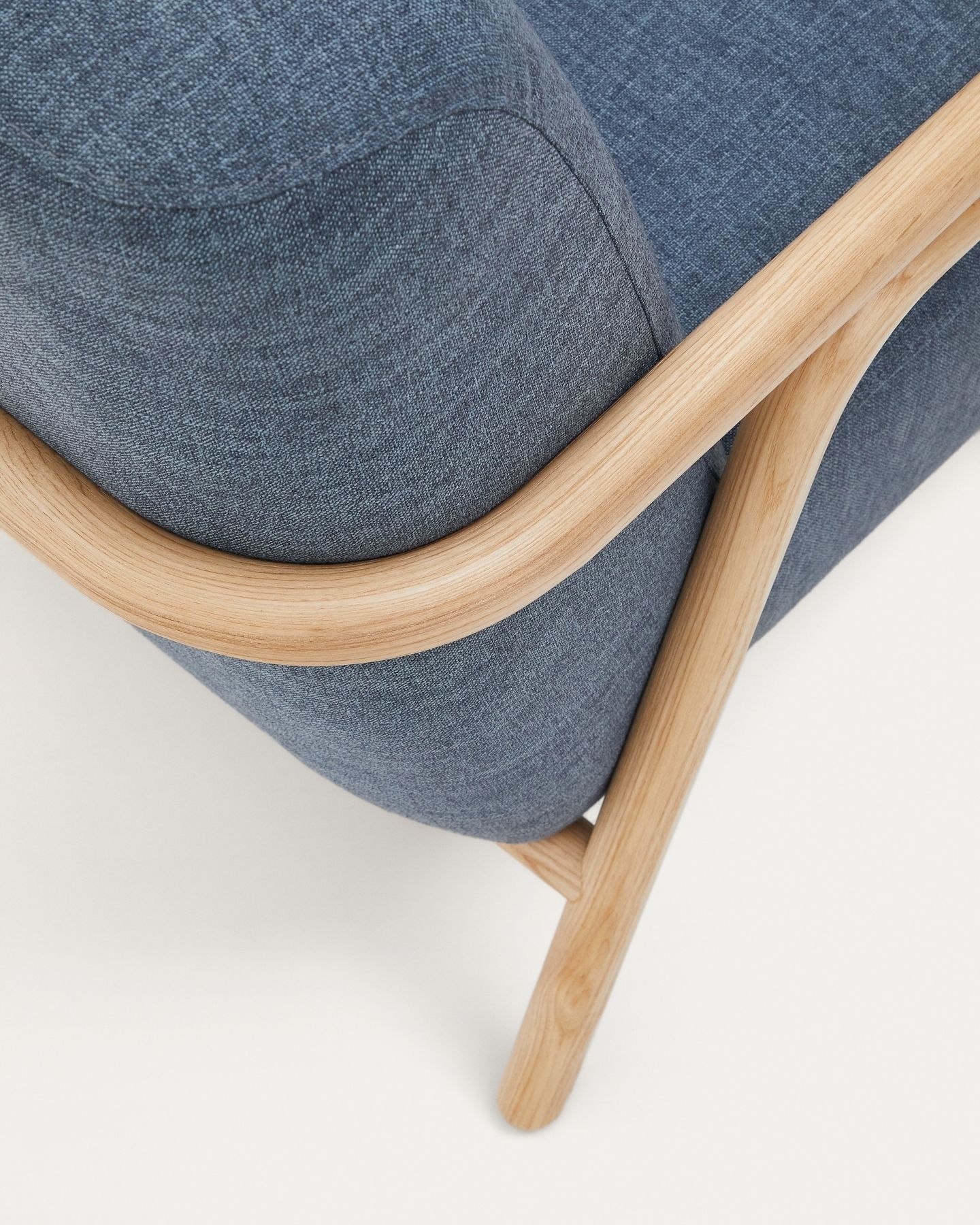 Kave Home создала Sylo с минималистичным дизайном изогнутой цилиндрической конструкции из массива ясеня в сочетании с высококачественной обивкой из натуральных хлопковых волокон с обработкой Easy Clean, идеально подходящей для детей и домашних животных.