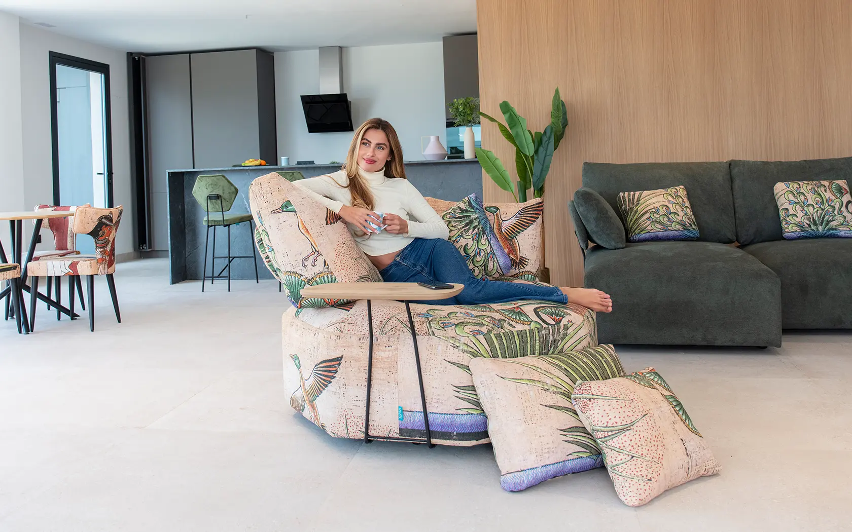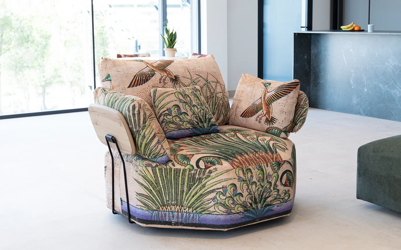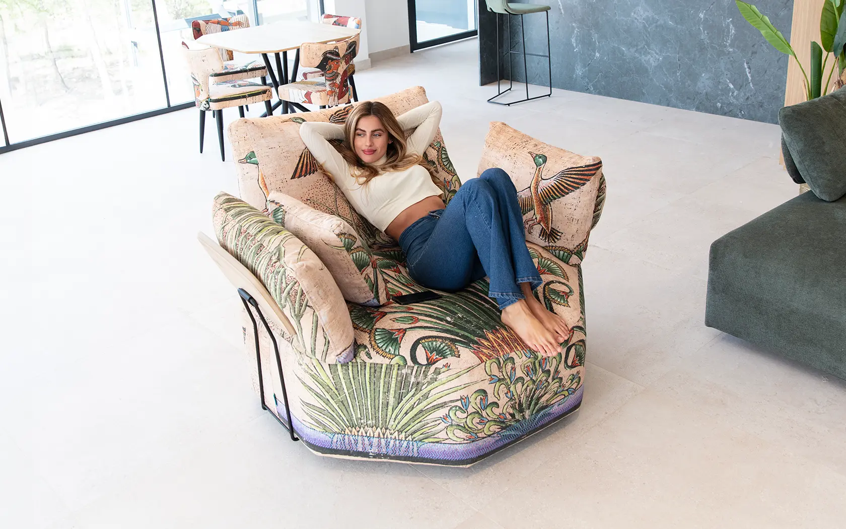Добившись того особенного сидения модели Тесея, в котором вы, кажется, плывете среди облаков, мы не могли удержаться от создания кресла с особым прикосновением, которое могло бы жить своей собственной жизнью.