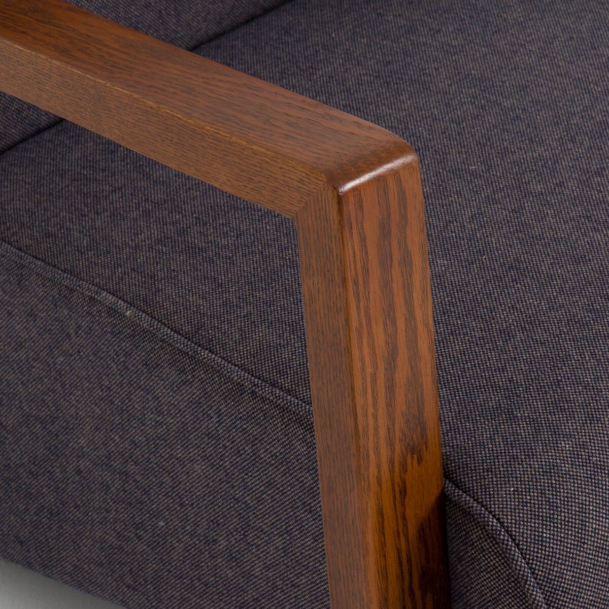 Кресло Sanami в новом дизайне с круглыми подушками сиденья и спинки и наклоненной формой. Окантовка подчеркивает прямой каркас. Почти прямоугольные подлокотники изготовлены из дуба, торинованного под орех, и обработаны маслом. Красивое и комфортное кресло от AMPM.