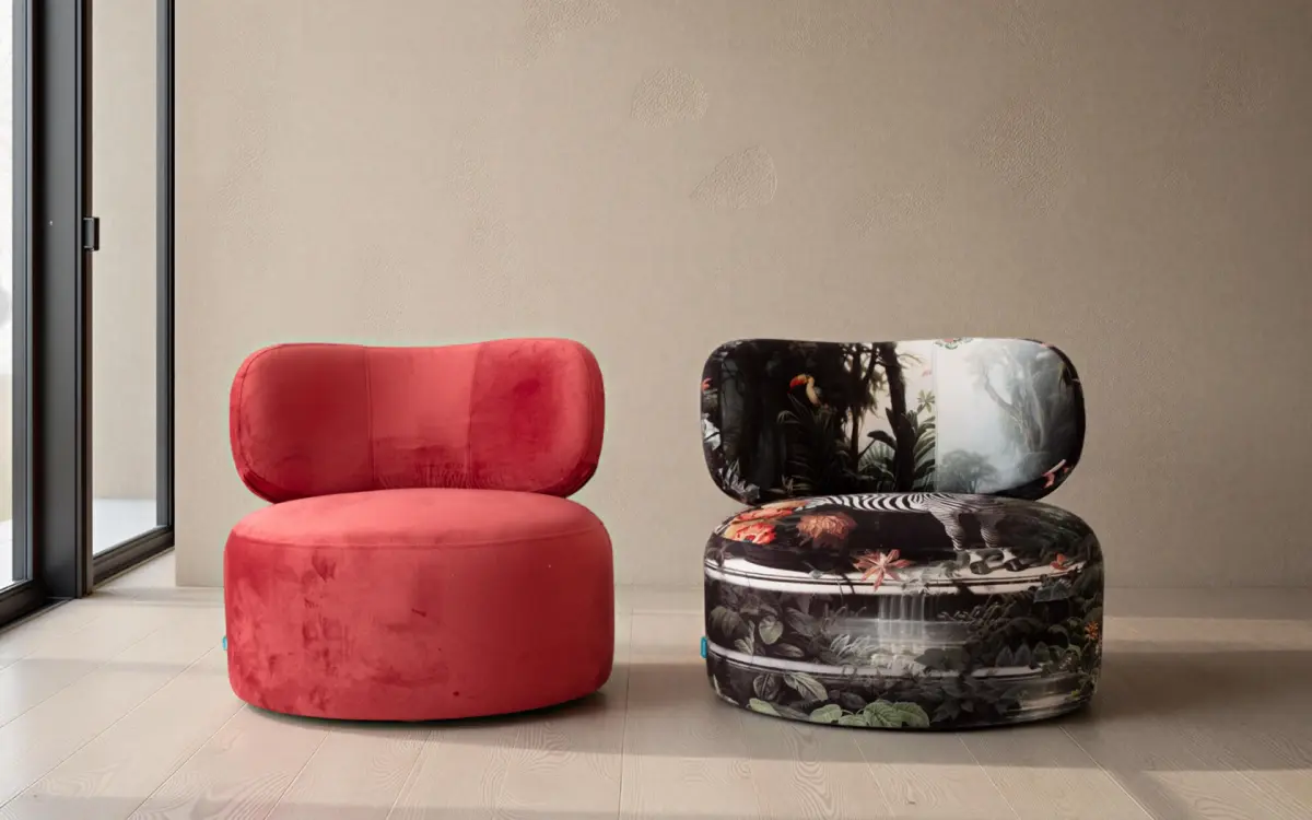 Овальное сиденье придает ему неповторимый характер, отходя от традиционных круглых форм и создавая более динамичный и элегантный силуэт. Тщательно продуманная спинка обеспечивает естественную и обволакивающую поддержку спины, позволяя комфортно сидеть лицом вперед или слегка вбок, с удобно расположенными подлокотниками.