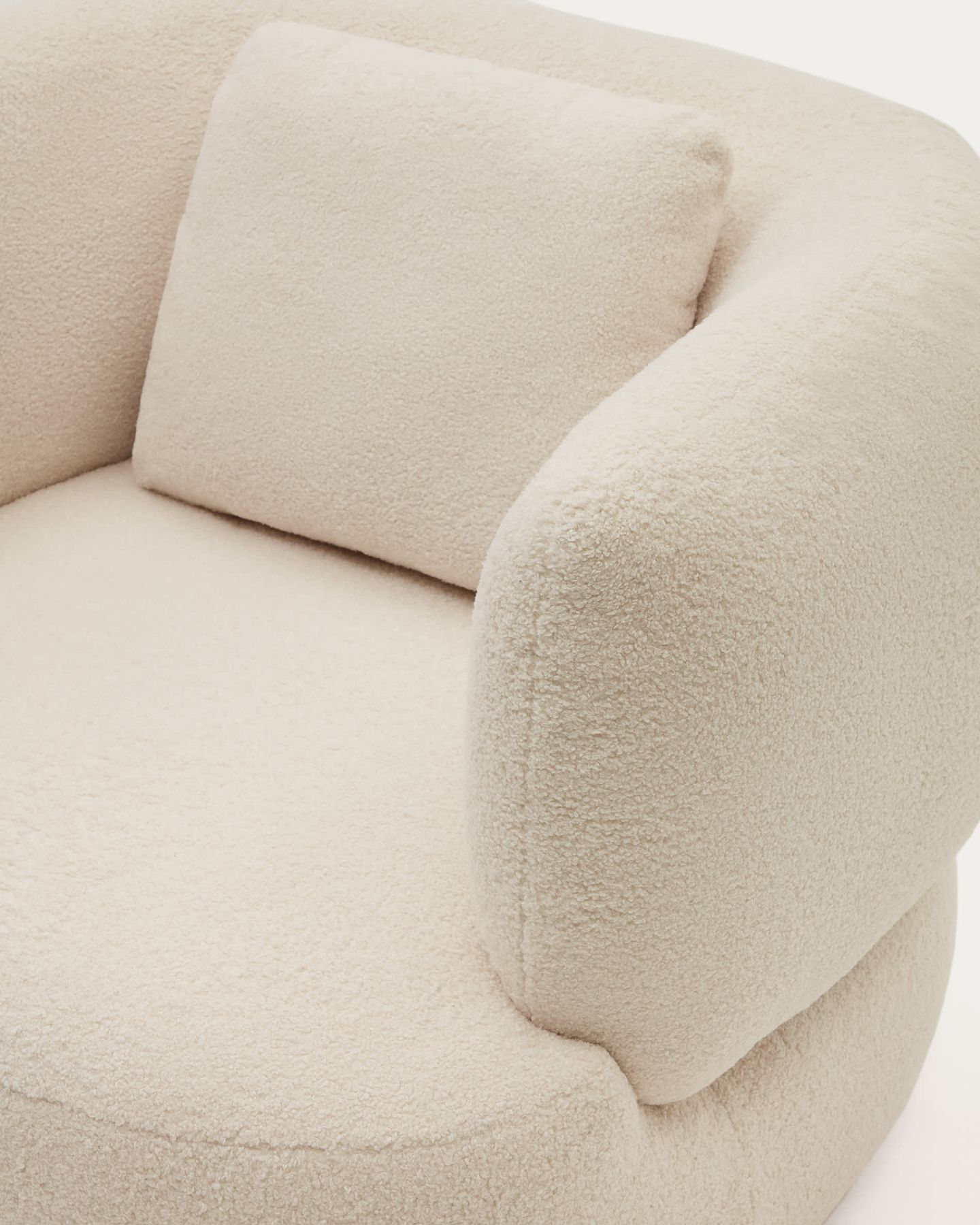 Команда Kave Home разработала кресло Martina, созданное для отдыха и заботы о планете. Его силуэт с изогнутыми линиями и обивка из 100% переработанного полиэстера с эффектом короткой шерсти делают его идеальным предметом для вашей гостиной.