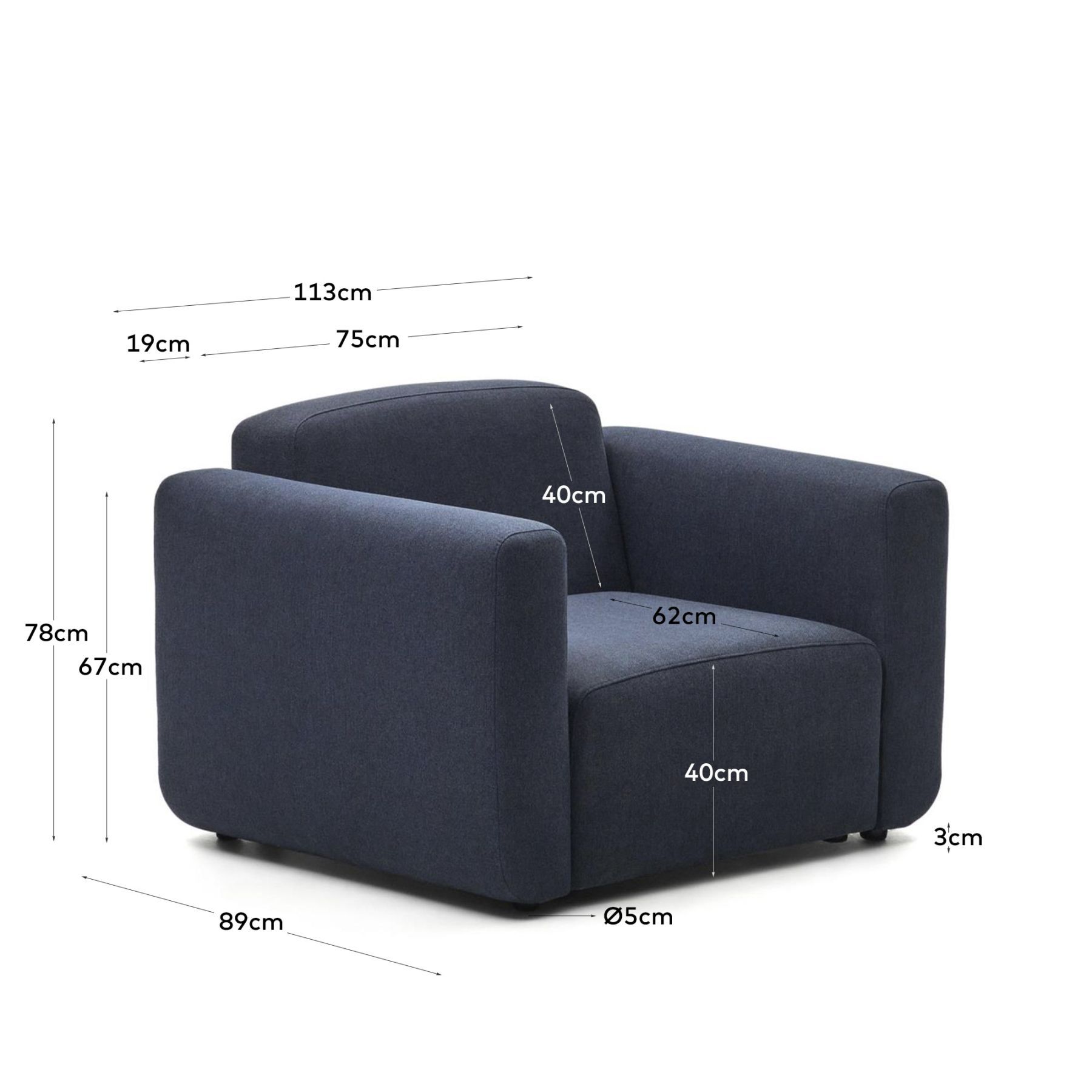 Модульное кресло с обивкой из ткани интерлок синего цвета. Система Easy Fit, поэтому вы можете настроить диван в соответствии с вашими потребностями.