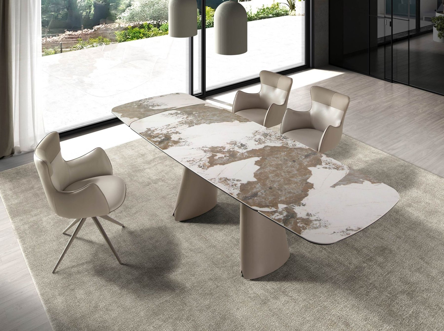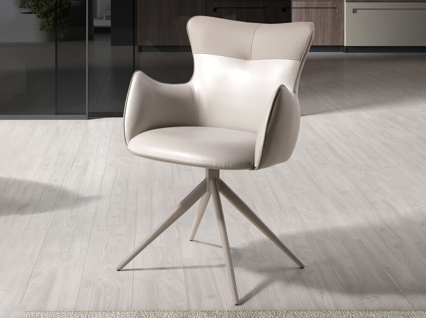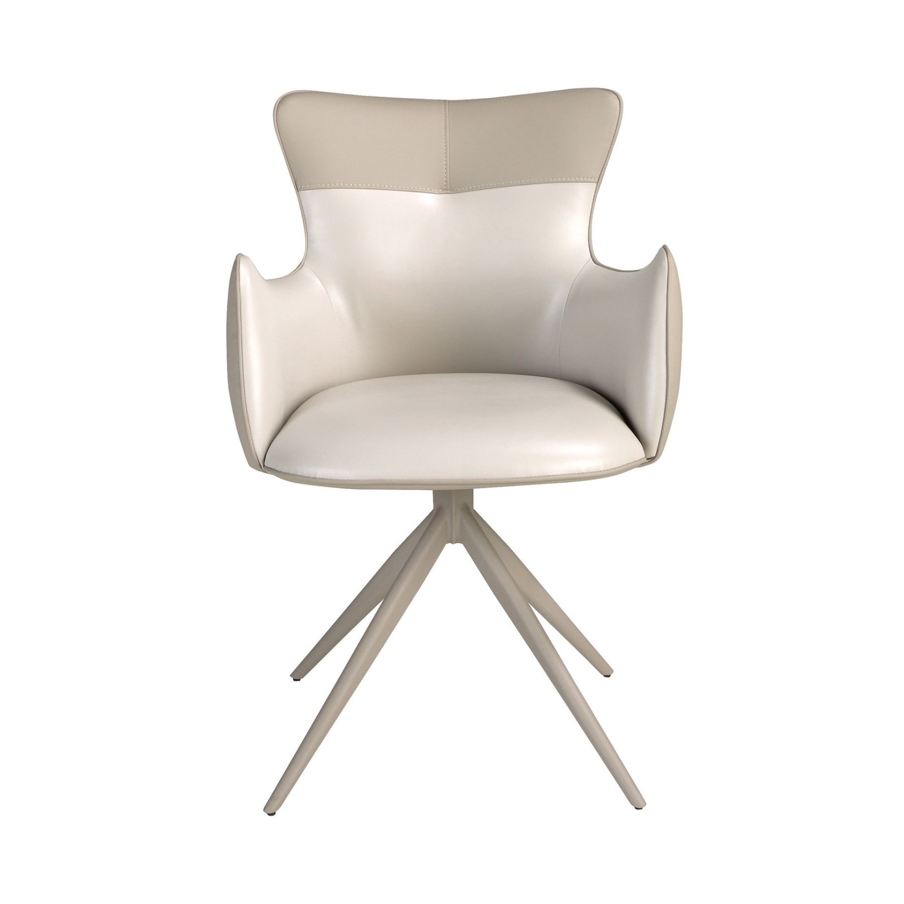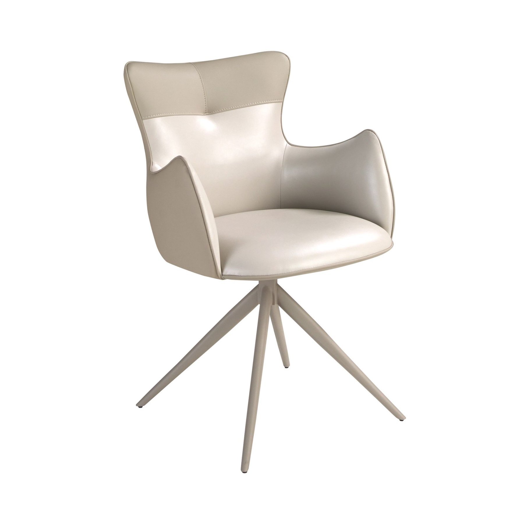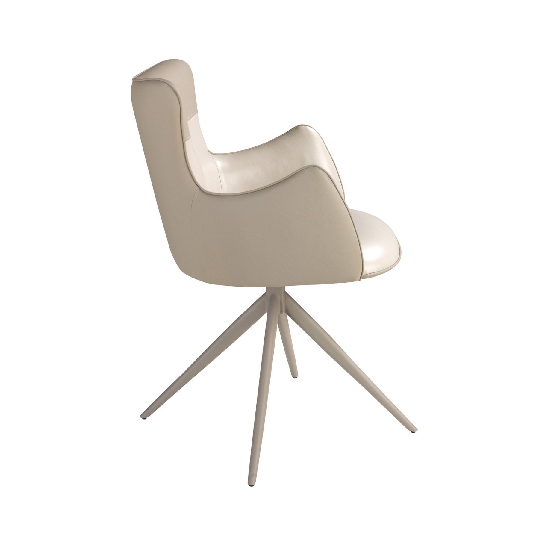 Современный поворотный стул с подлокотниками, обитыми искусственной кожей, с сиденьем кремового цвета и спинкой серо-бежевого оттенка. Ножки из нержавеющей стали песочного цвета, сочетающие в себе авангардный и вневременной стиль, сделают его незаменимым элементом вашей кухни или столовой. Этот стул от Анхеля Серда сочетает в себе уникальный и индивидуальный стиль бренда с максимальным комфортом и устойчивостью благодаря высокому качеству обивки и оригинальной конструкции ножек.