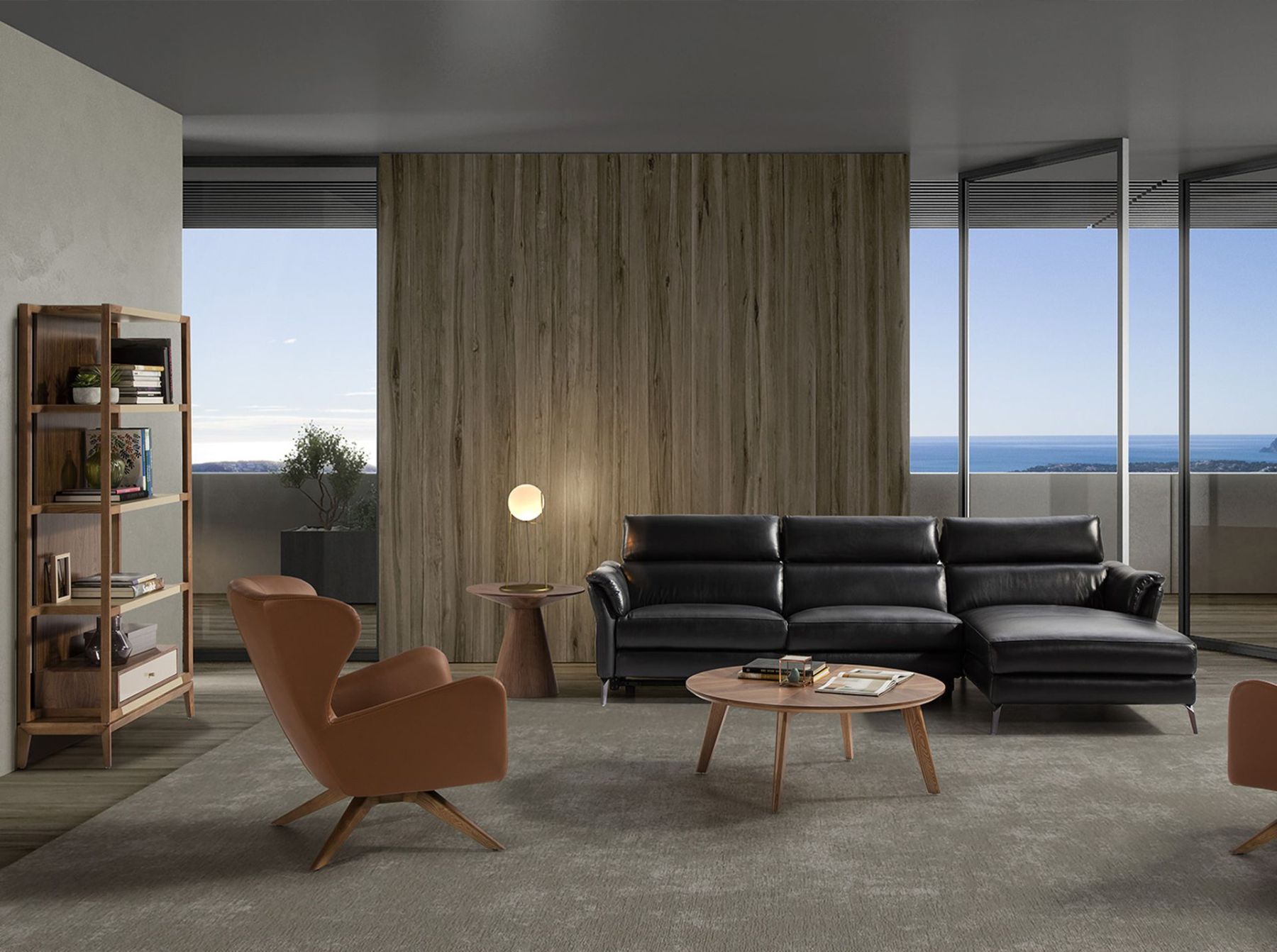 Спинка выступает за границы сиденья и слегка завернута вовнутрь. Также как и сиденье с высокими подлокотниками, она смягчена плотным и упругим наполнителем, обеспечивающим мягкость и комфорт.
