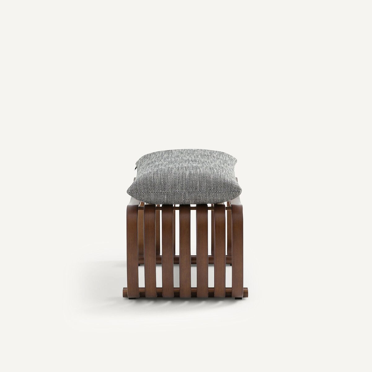 Подушка из рифленой ткани (55% полиэстер, 30% вискоза, 10% лен, 5% хлопок, 250 г/м²). Наполнитель из полиэстерового пеноматериала плотностью 30 кг/м³.