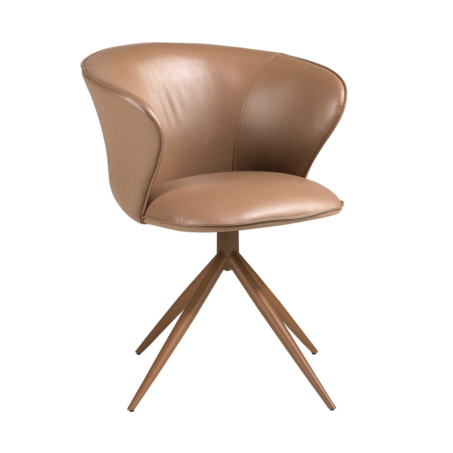 Современный поворотный стул с сиденьем и спинкой, обитыми искусственной кожей верблюжьего цвета. Его коричневые стальные ножки, сочетающие в себе авангардный и вневременной стиль, сделают его незаменимым элементом вашей кухни или столовой. Этот стул от Анхеля Серда сочетает в себе уникальный и индивидуальный стиль бренда с максимальным комфортом и устойчивостью благодаря высокому качеству обивки и оригинальной конструкции ножек.