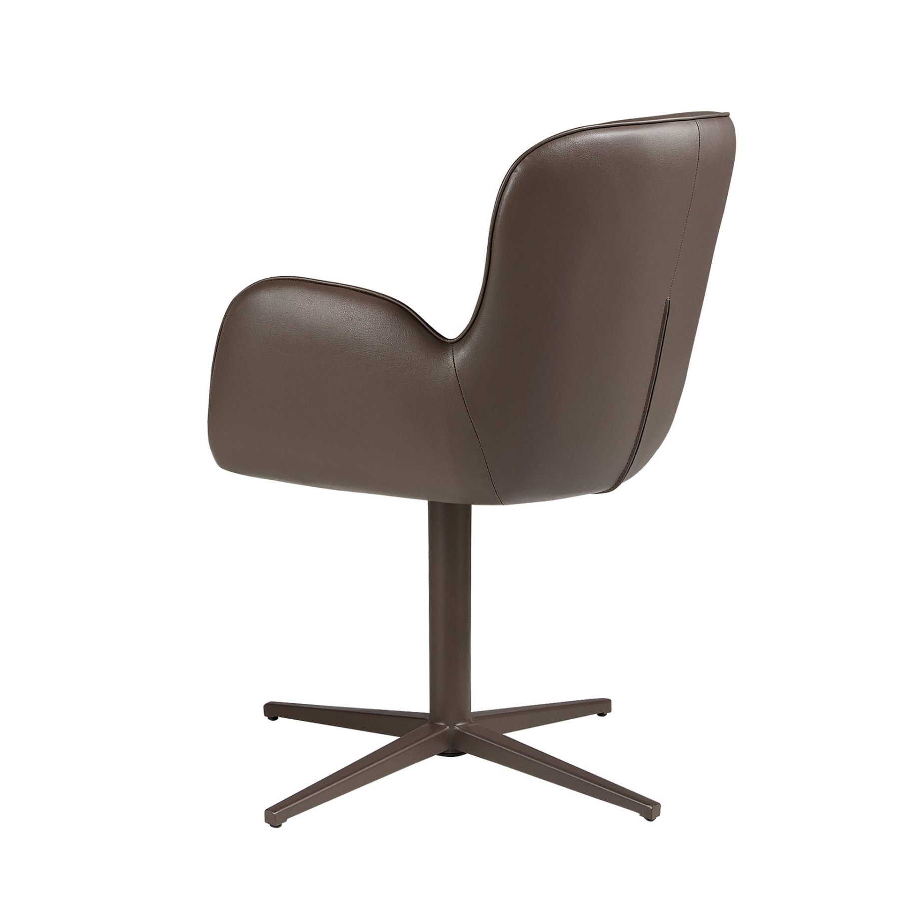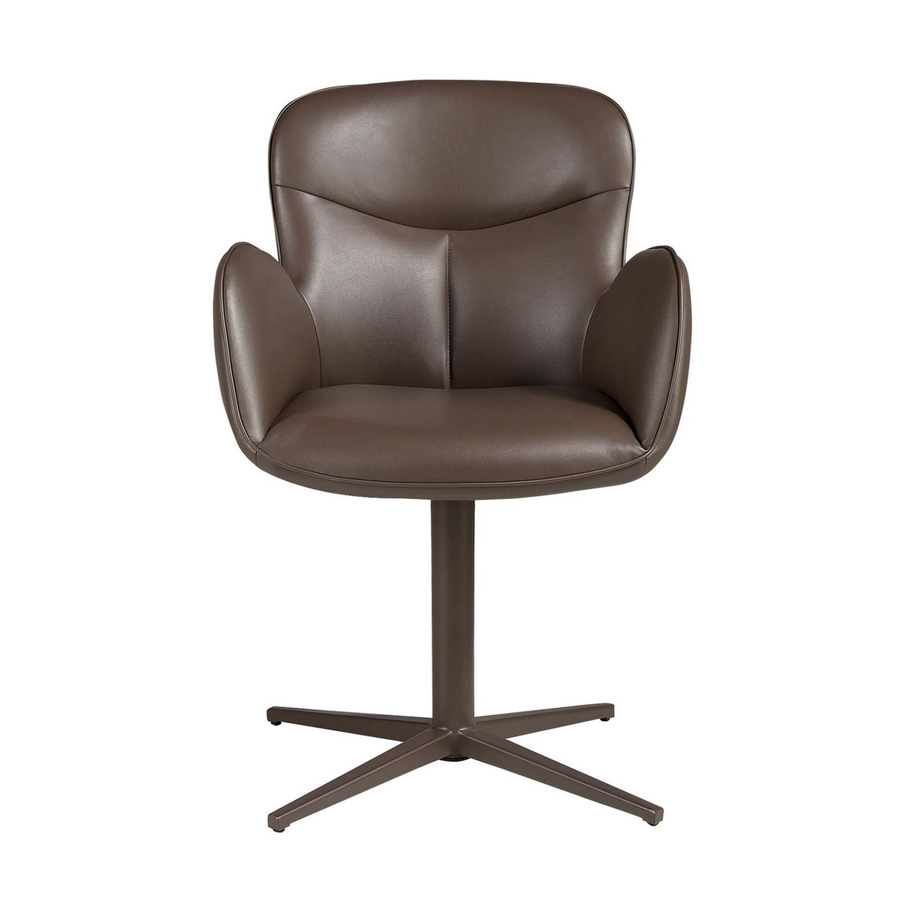 Современный поворотный стул с подлокотниками, сиденье и спинка которого обиты искусственной кожей шоколадно-коричневого цвета. Ножки из стали шоколадно-коричневого цвета, сочетающие в себе авангардный и вневременной стиль, сделают его незаменимым элементом вашей кухни или столовой. Этот стул от Анхеля Серда сочетает в себе уникальный и индивидуальный стиль бренда с максимальным комфортом и устойчивостью благодаря высокому качеству обивки и оригинальной конструкции ножек.