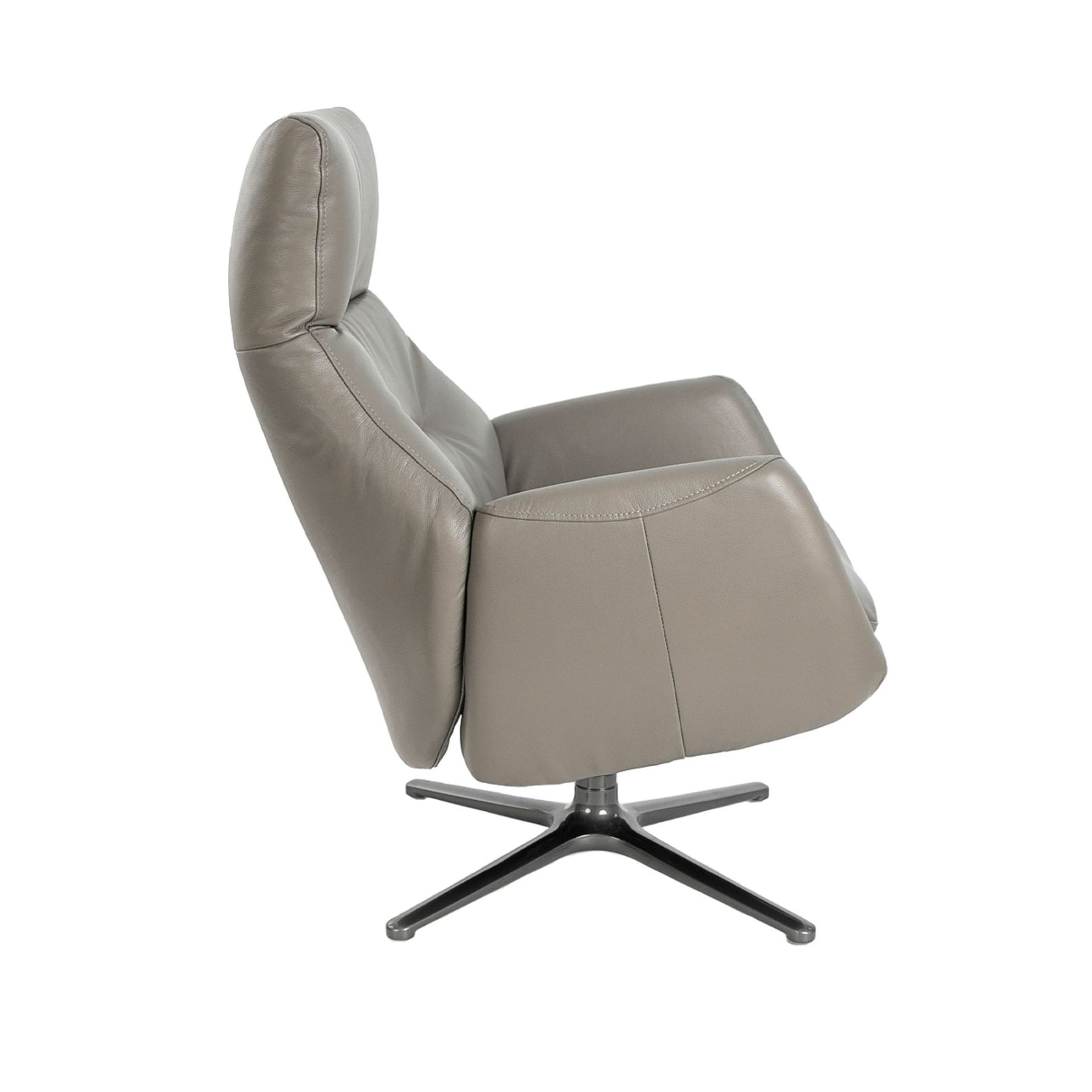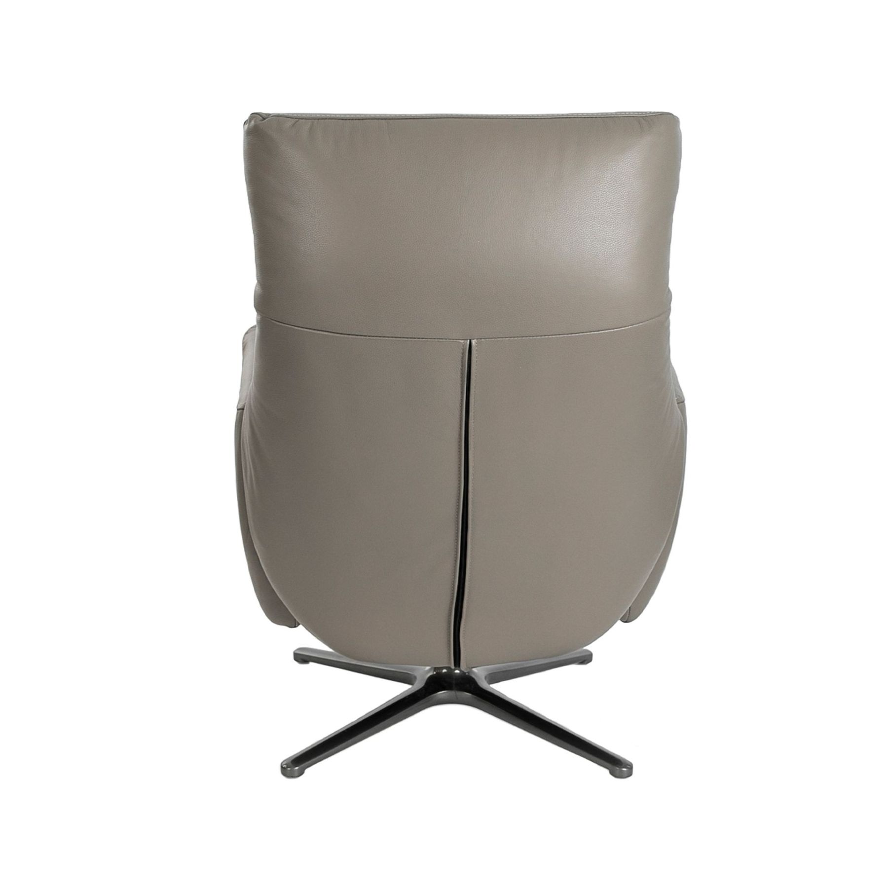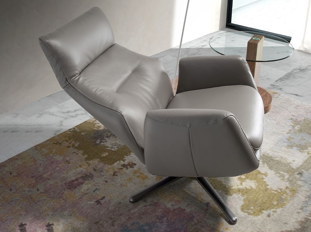 Вращающееся кресло с обивкой из воловьей кожи. Структура ножек из затемненной нержавеющей стали.