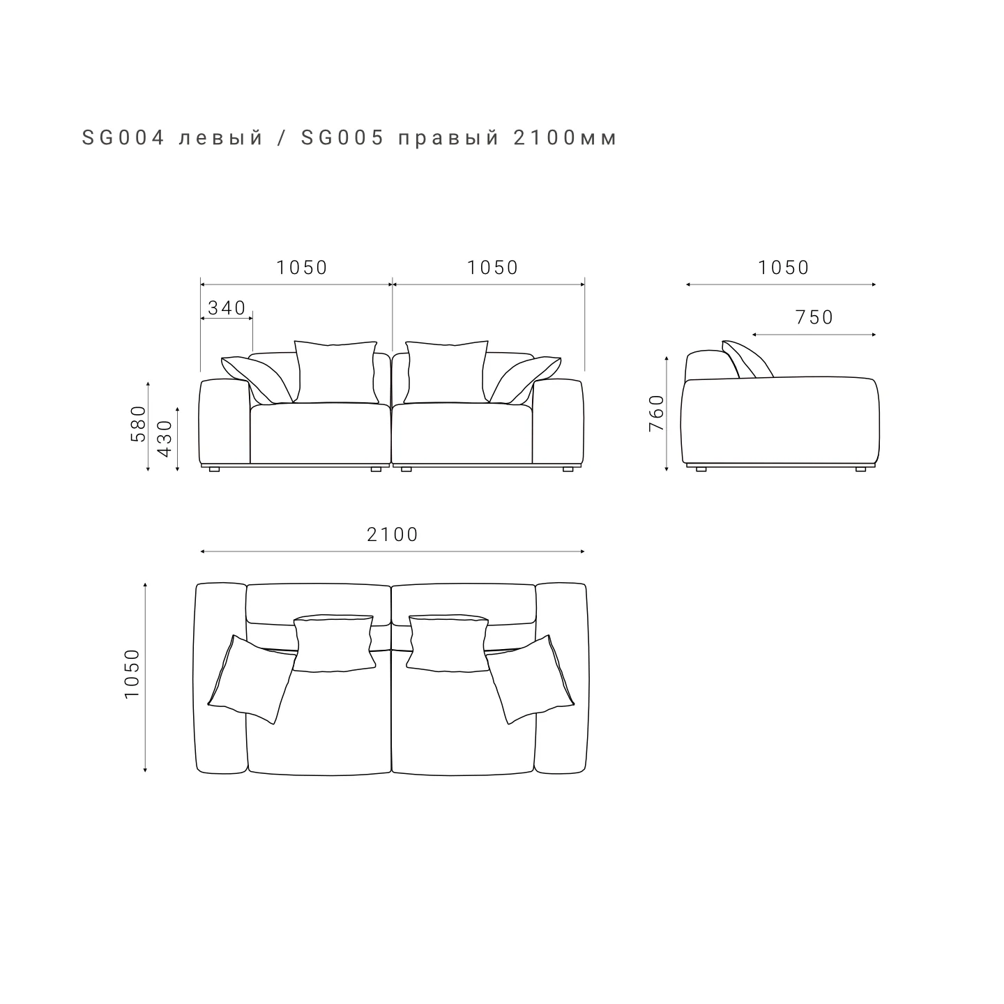В комплекте с каждым модулем поставляется декоративная подушка в цвет основной ткани дивана.