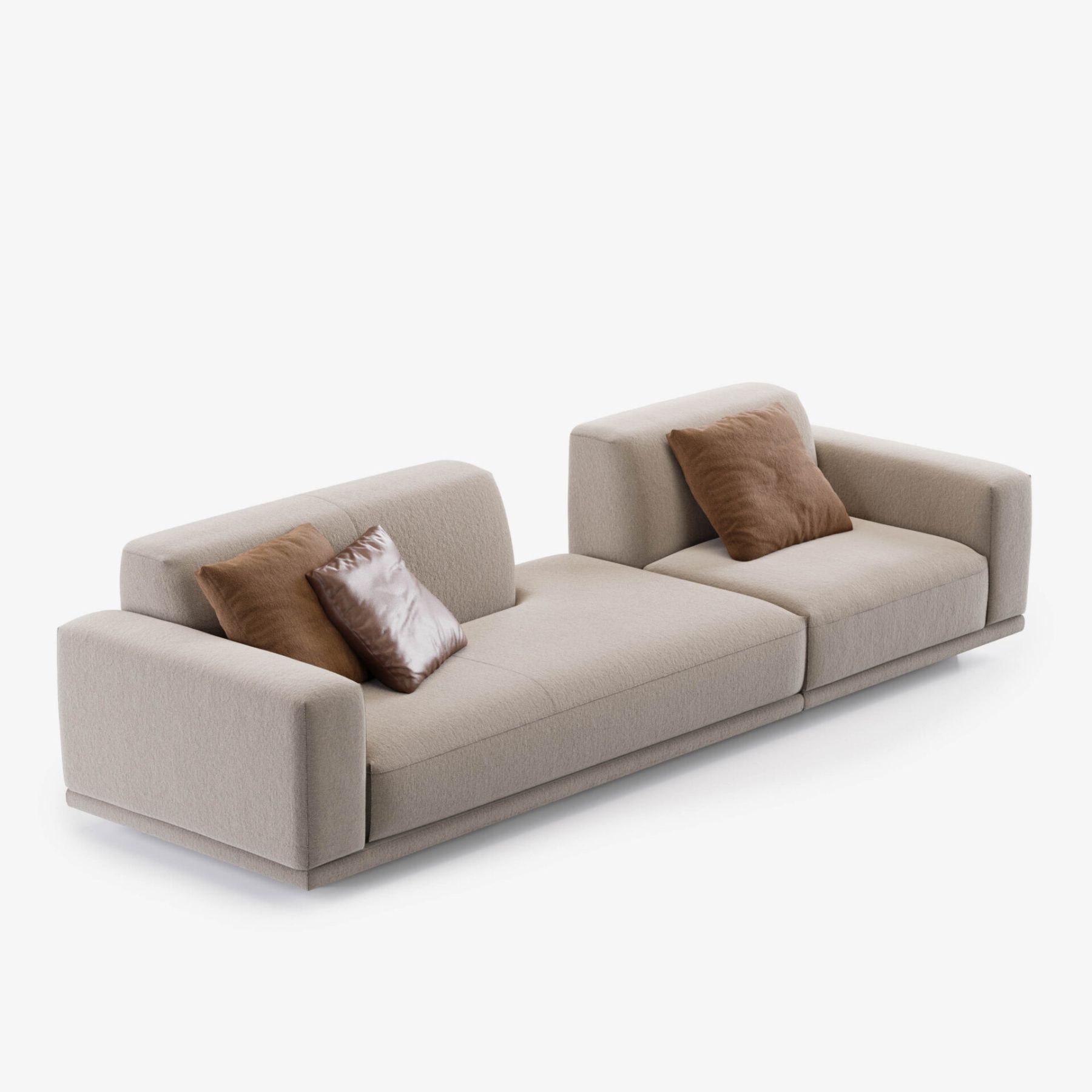 Все модули самостоятельны — их можно комбинировать или использовать по отдельности, создавая именно ту среду, которая вам нужна. Коллекцию дополняют кресла, повторяющие ее пластику, и многофункциональные пуфы-столики с отделкой из шпона дуба. Диван можно персонализировать практичными элементами: подлокотниками, подставками, боковыми столиками и ящиками для хранения, которые легко объединяются с основными модулями.