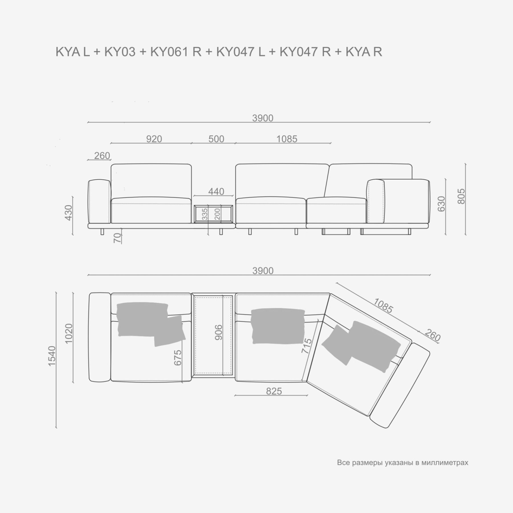 • Модульная система: Собирайте диван любой конфигурации из прямых, угловых секций, модулей-кушеток и лаундж-модулей, которые объединяются