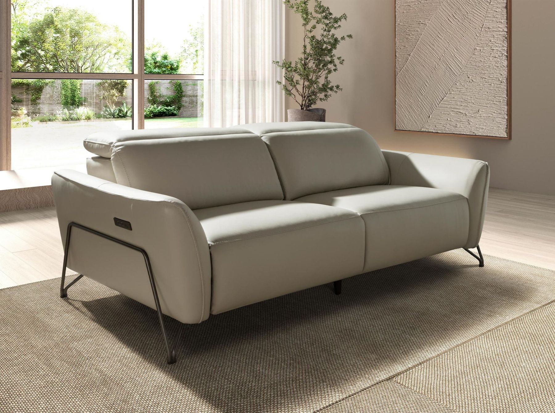 3-местный диван для релаксации с современным дизайном, обитый песочного цвета воловьей кожей с подголовником для большего комфорта. Как своим стилем, так и своими ножками из темной нержавеющей стали , этот диван привнесет нотку авангарда и элегантности, которую вы ищете в своем доме.