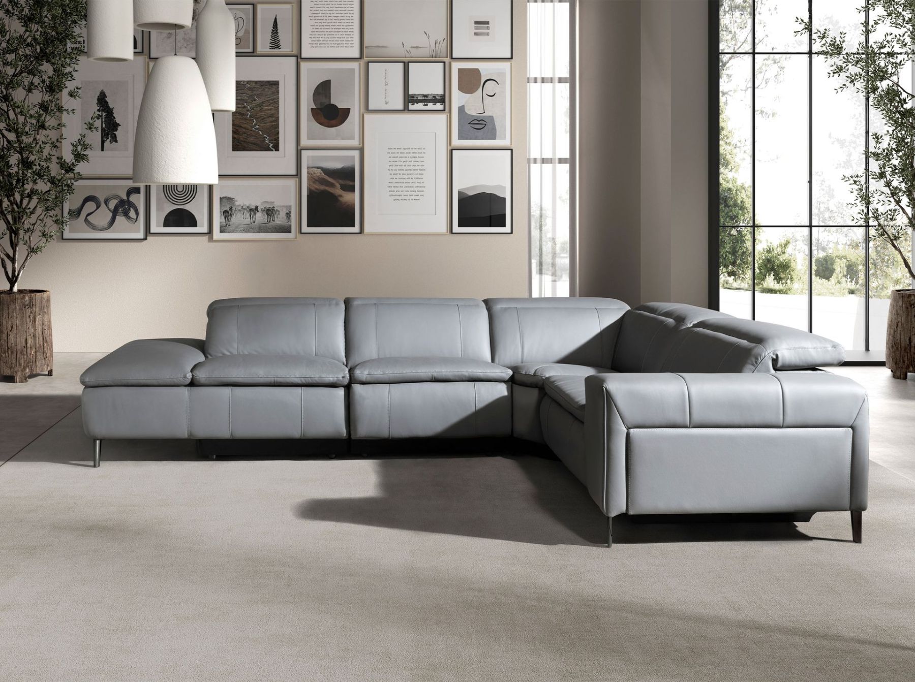 5-местный диван-шезлонг для отдыха слева с современным дизайном, обитый серой воловьей кожей, с подголовником для большего комфорта. Как своим стилем, так и своими затемненными полированными ножками из нержавеющей стали, этот диван привнесет нотку авангарда и элегантности, которую вы ищете в своем доме.