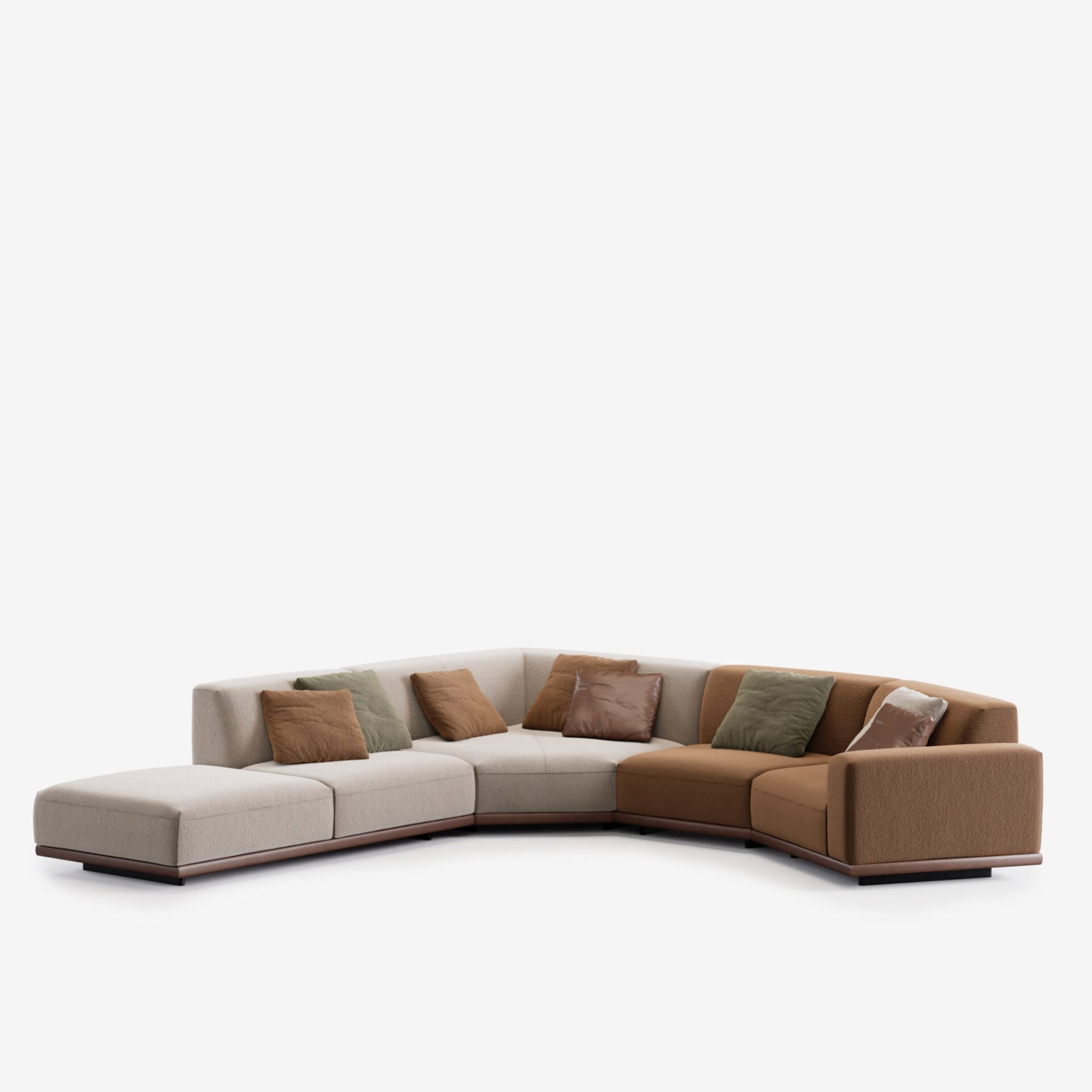 Все модули самостоятельны — их можно комбинировать или использовать по отдельности, создавая именно ту среду, которая вам нужна. Коллекцию дополняют кресла, повторяющие ее пластику, и многофункциональные пуфы-столики с отделкой из шпона дуба. Диван можно персонализировать практичными элементами: подлокотниками, подставками, боковыми столиками и ящиками для хранения, которые легко объединяются с основными модулями.