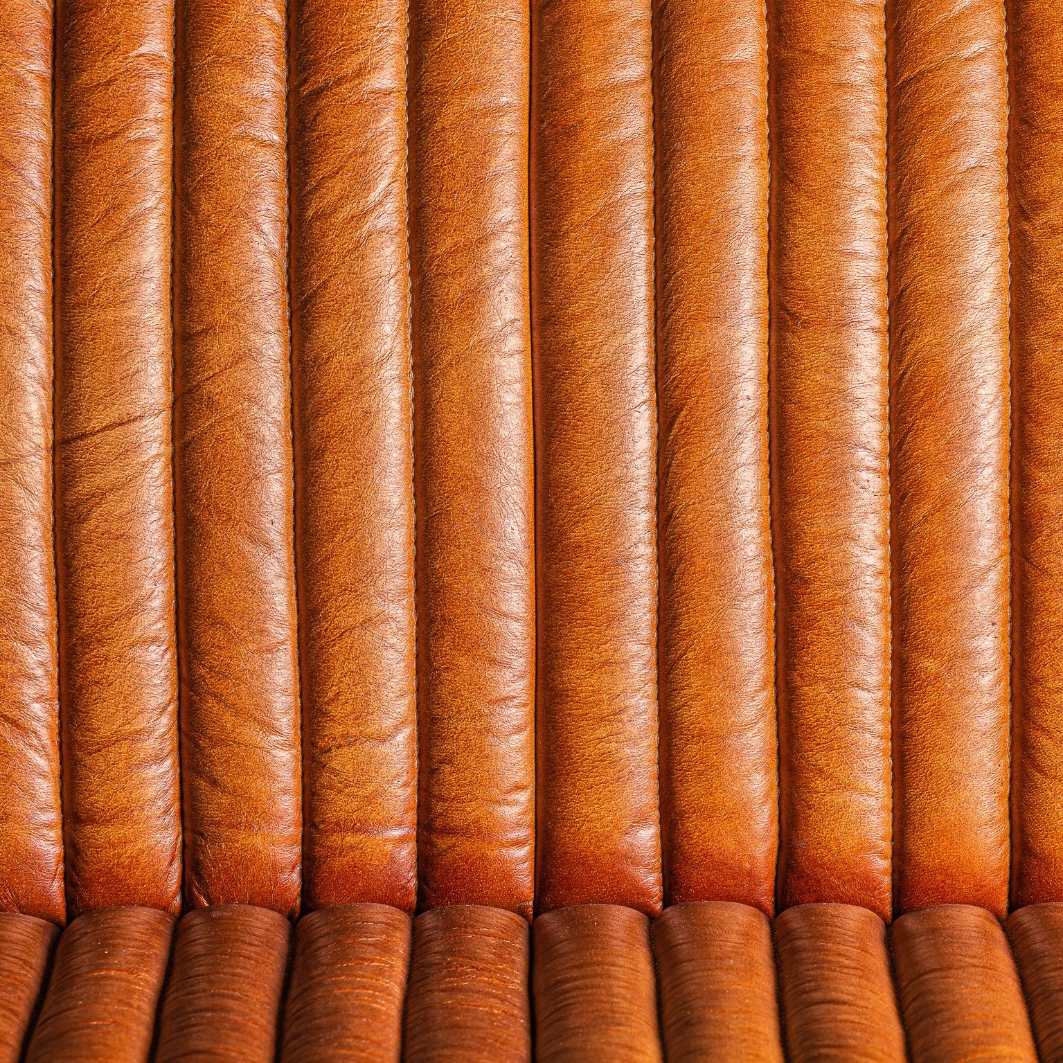 Барный диван Chadron, коричневый, винтажный стиль. Изготовлен из железа в сочетании с кожей.