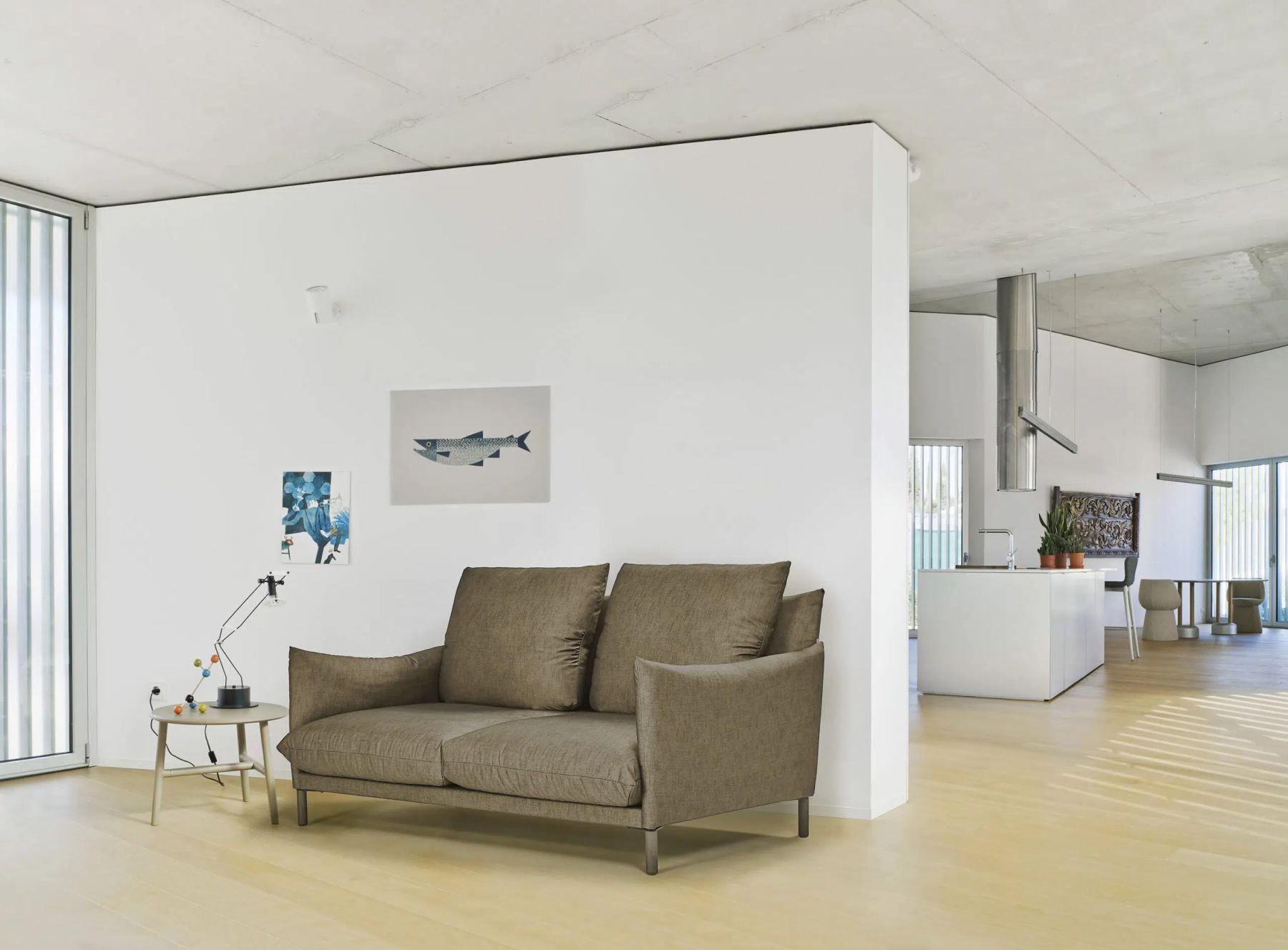 Спокойный и простой дизайн, не лишенный конструктивной сложности благодаря уникальным формам подлокотников и мягким, но тонким спинкам.