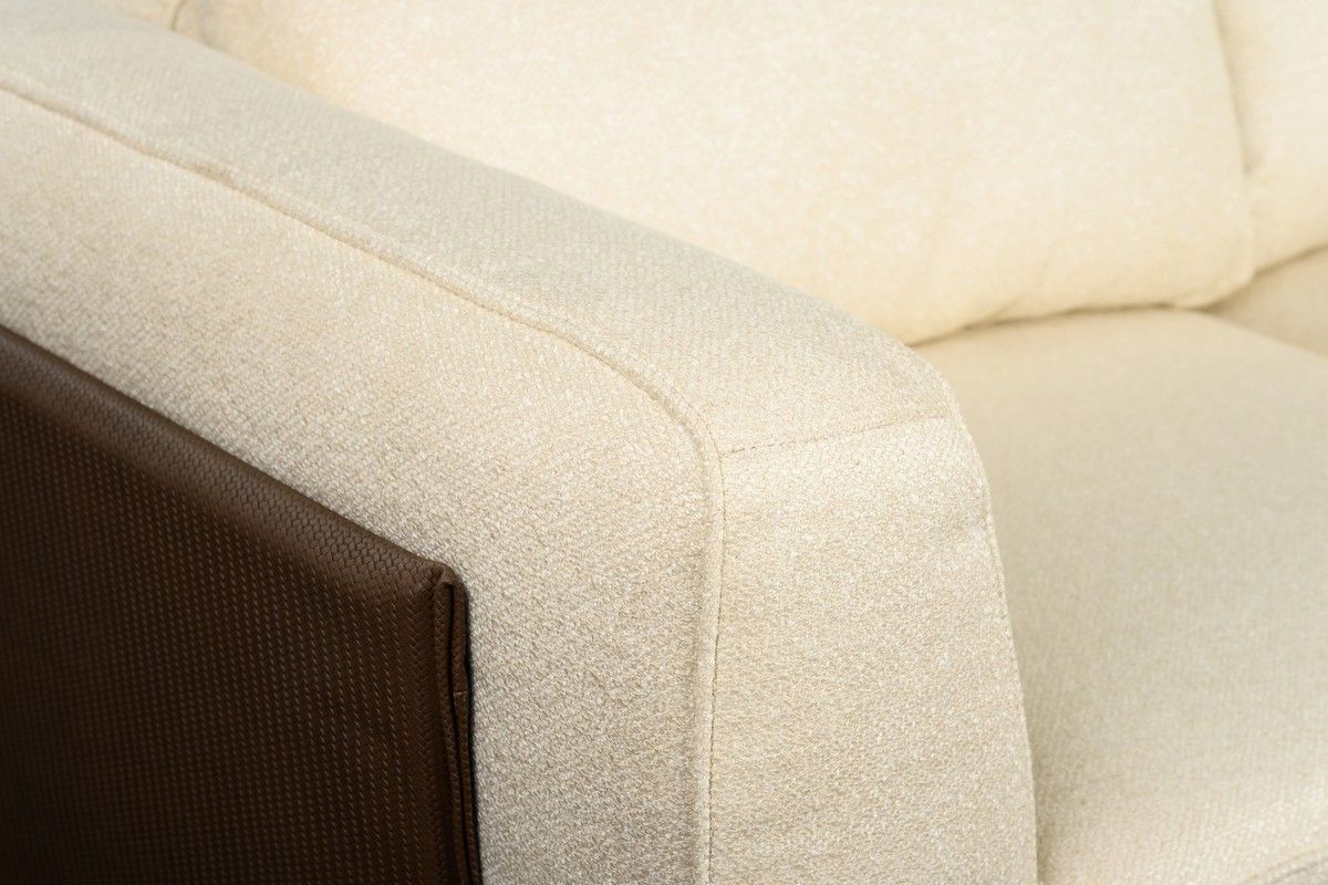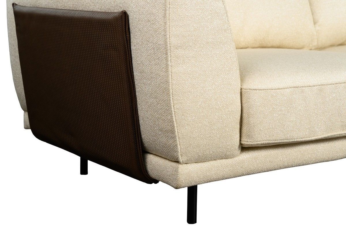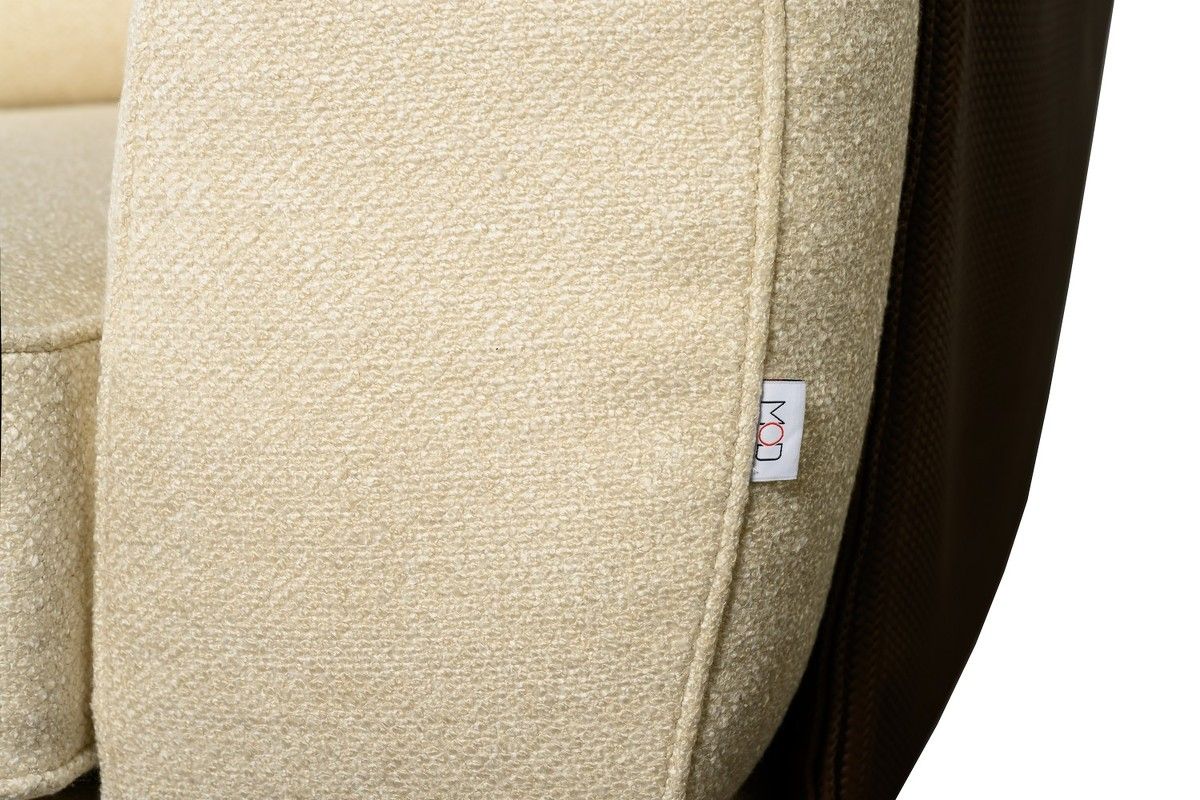 Отлично подойдет для меблировки квартиры в скандинавском стиле. Ножки из черного металла, обивка по бокам (коричневая зона) в натуральной коже. Основная светлая кремовая ткань.